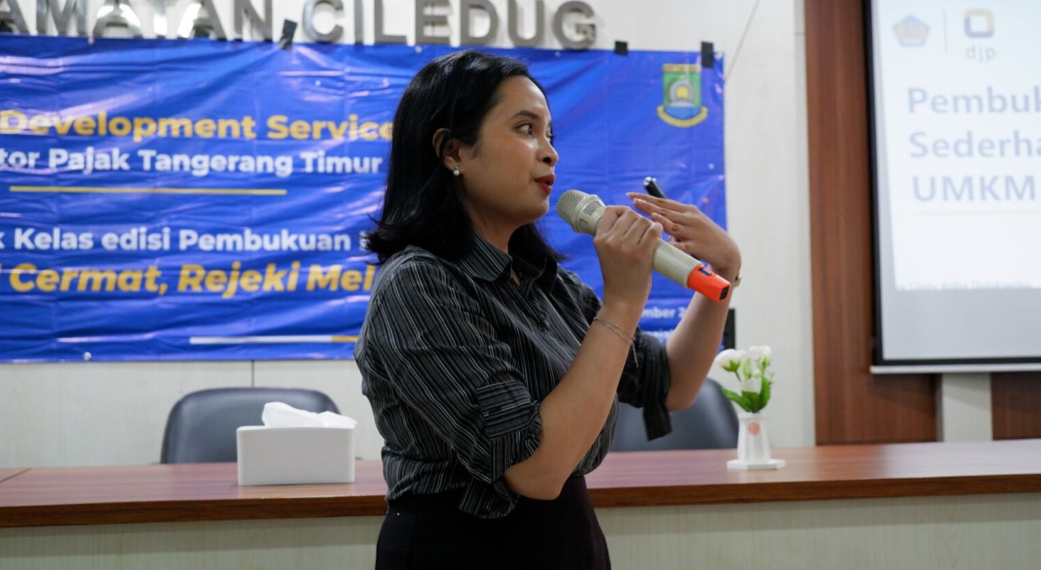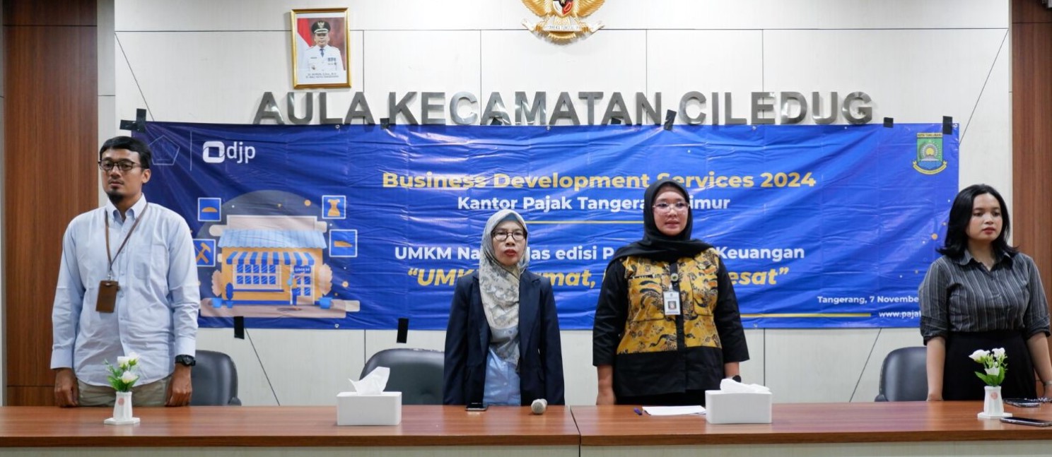 Kantor Pelayanan Pajak (KPP) Pratama Tangerang Timur mengadakan Business Development Services (BDS) tahun 2024 dengan tema UMKM Cermat, Rezeki Melesat di Kantor Kecamatan Ciledug yang dihadiri oleh pelaku UMKM di Kecamatan Ciledug, Kota Tangerang (Kamis, 7/11).