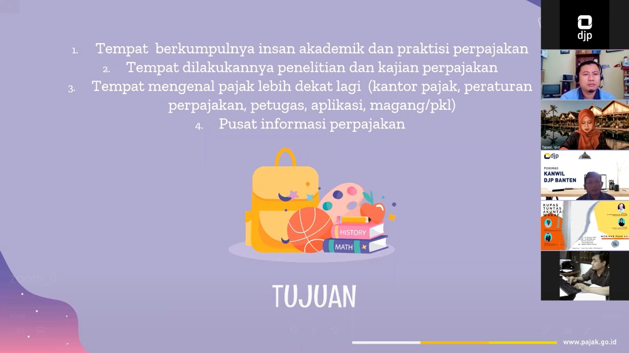 Kantor Wilayah DJP Banten bersama Universitas Serang Raya (Unsera) berdiskusi secara virtual melalui Zoom Meeting di Serang untuk membahas langkah awal pendirian Tax Center dan persiapan penandatangana nota kesepahamannya (Kamis, 5/12).