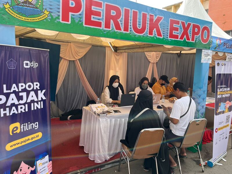 Pojok pajak hadir memberikan pelayanan publik pada acara Periuk Expo 2023 yang digelar dalam rangka menyambut dan memeriahkan Hari Ulang Tahun (HUT) Kota Tangerang ke-30. Dipimpin oleh Vrince Asmawati, Penyuluh Pajak Ahli Muda Tri Winarsih dan para pelaksana Seksi Pelayanan memberikan asistensi pemadanan NIK-NPWP serta pelaporan SPT Tahunan Orang Pribadi kepada wajib pajak yang datang ke lokasi.