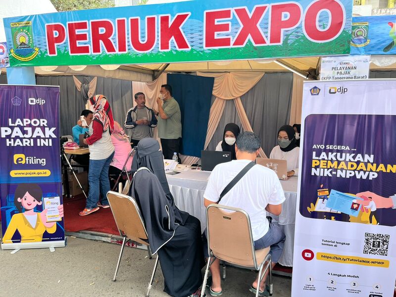 Kantor Pelayanan Pajak (KPP) Pratama Tangerang Barat membuka Pojok Pajak Pemadanan NIK-NPWP dan Tata Cara Pelaporan SPT Tahunan Orang Pribadi di Periuk Expo, Perumahan Grand Tomang, Kecamatan Periuk, Kota Tangerang (Minggu, 19/2).