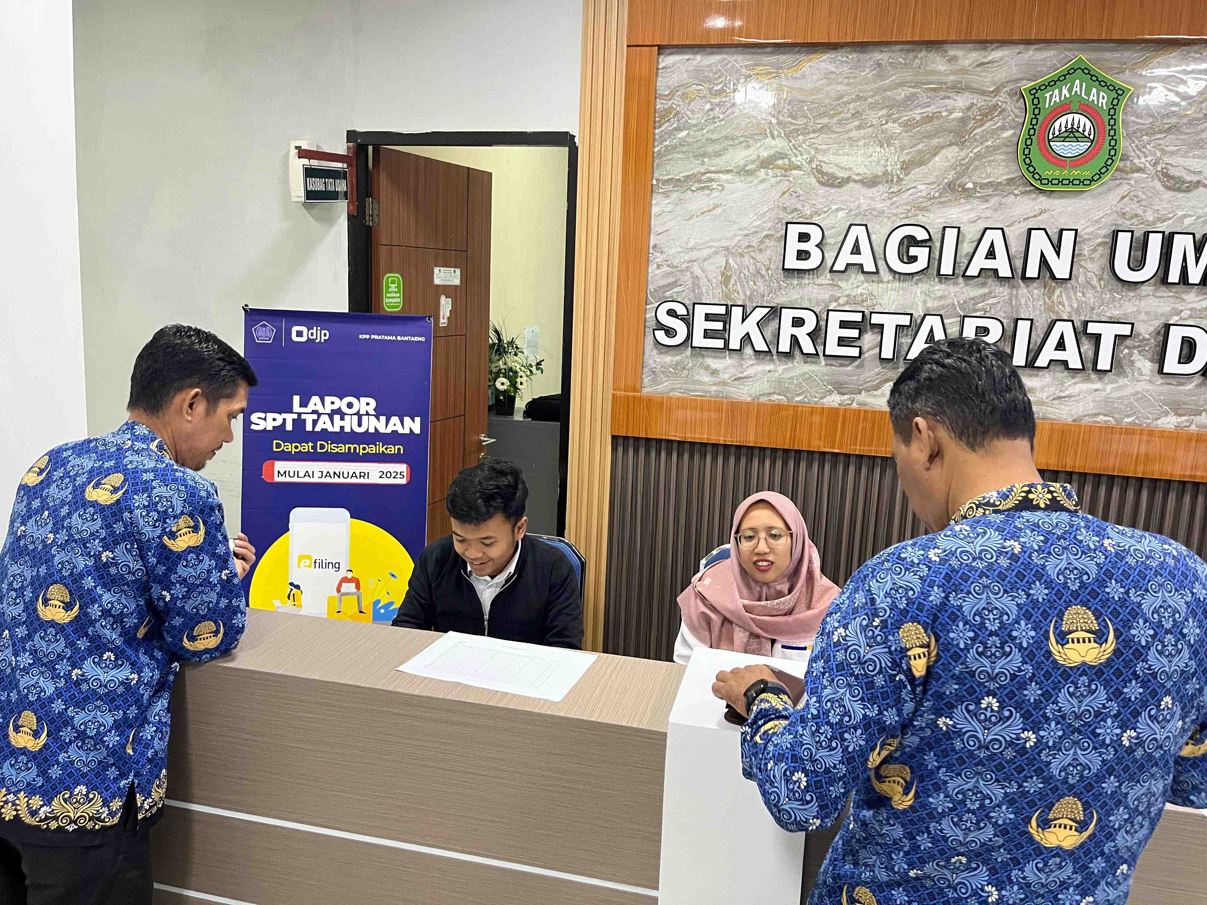 Dalam rangka meningkatkan kepatuhan wajib pajak, Kantor Pelayanan, Penyuluhan, dan Konsultasi Perpajakan (KP2KP) Takalar mengadakan asistensi pelaporan Surat Pemberitahuan (SPT) Tahunan Pajak Penghasilan (PPh) Orang Pribadi Tahun Pajak 2024 yang bertempat di Bagian Umum Sekretariat Daerah Kabupaten Takalar (Senin, 17/3). Kegiatan ini bertujuan untuk membantu pegawai instansi terkait dalam menyelesaikan kewajiban perpajakan mereka.