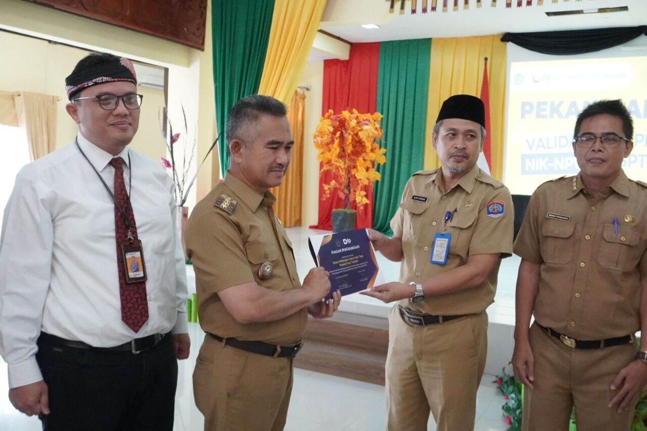 Di akhir acara, Kepala KPP Pratama Tarakan memberikan plakat kepada Wali Kota Tarakan dan dilanjutkan foto bersama sambil menunjukkan bukti pelaporan SPT Tahunan para pejabat yang hadir.