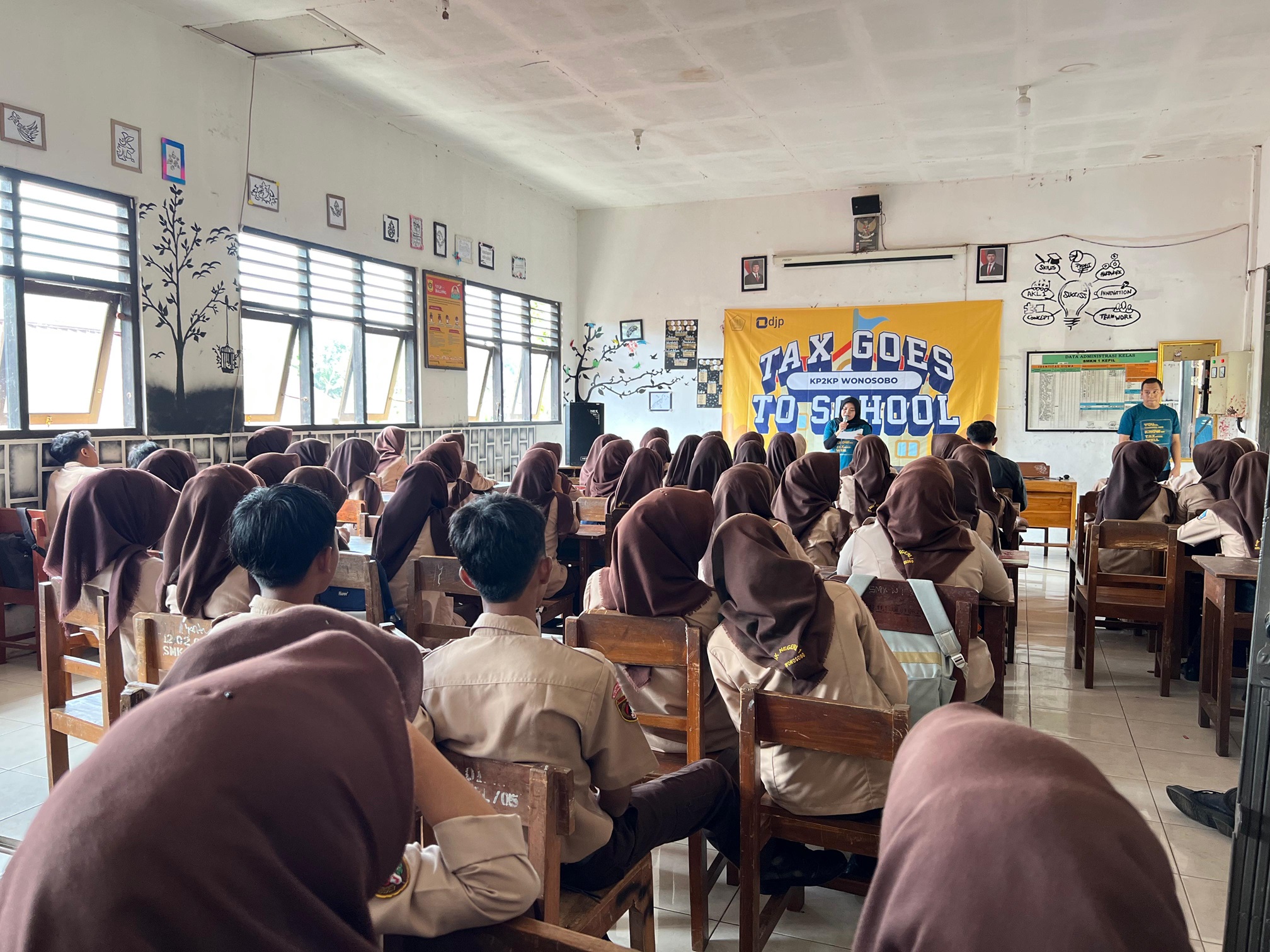 Kantor Pelayanan, Penyuluhan, dan Konsultasi Perpajakan (KP2KP) Wonosobo mengawali kegiatan Tax Goes To School (TGTS) Tahun 2025 di Sekolah Menengah Kejuruan Negeri (SMKN) 1 Kepil, Kabupaten Wonosobo (Jumat, 2/5).