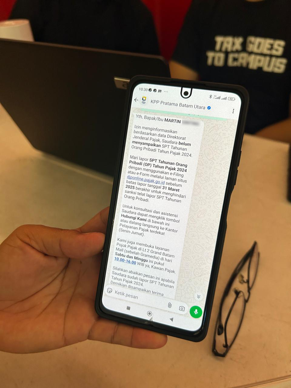 “Setelah berhasil melaporkan SPT Tahunan melalui DJP Online, kami juga mengajak teman-teman wajib pajak yang berkonsultasi untuk mengakses Coretax DJP agar terbiasa dan lebih familiar dengan sistem baru yang mulai digunakan mulai 1 Januari 2025 ini,” ujar Kepala Seksi Bimbingan Pelayanan dan Konsultasi Kanwil DJP Kepulauan Riau, Ary Festanto.
