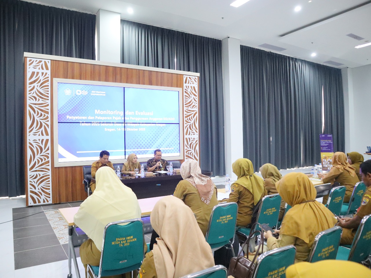 Kantor Pelayanan Pajak (KPP) Pratama Karanganyar bekerja sama dengan Kantor Pelayanan, Penyuluhan, dan Konsultasi Perpajakan (KP2KP) Sragen menyelenggarakan kegiatan Monitoring dan Evaluasi (Monev) Penyetoran dan Pelaporan Pajak atas Penggunaan Anggaran Dana Desa (DD)/Alokasi Dana Desa (ADD) Tahun 2025 bagi seluruh desa di Kabupaten Sragen.