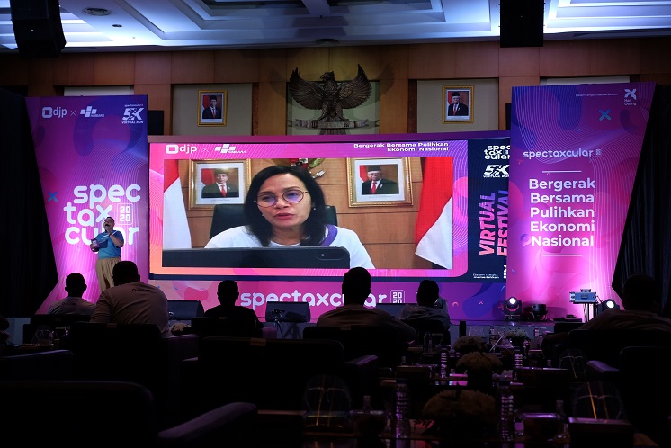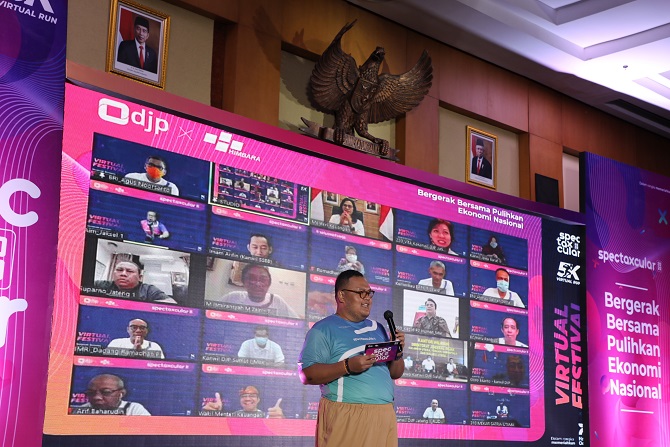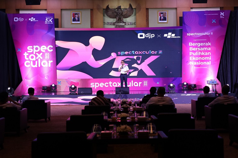 Direktorat Jenderal Pajak (DJP) menyelenggarakan kegiatan Spectaxcular 2020 secara virtual bertajuk “Bergerak Bersama Pulihkan Ekonomi Nasional” sebagai bagian dari rangkaian peringatan Hari Oeang Republik Indonesia ke-74 di Kantor Pusat DJP, Jakarta (Jumat, 23/10).