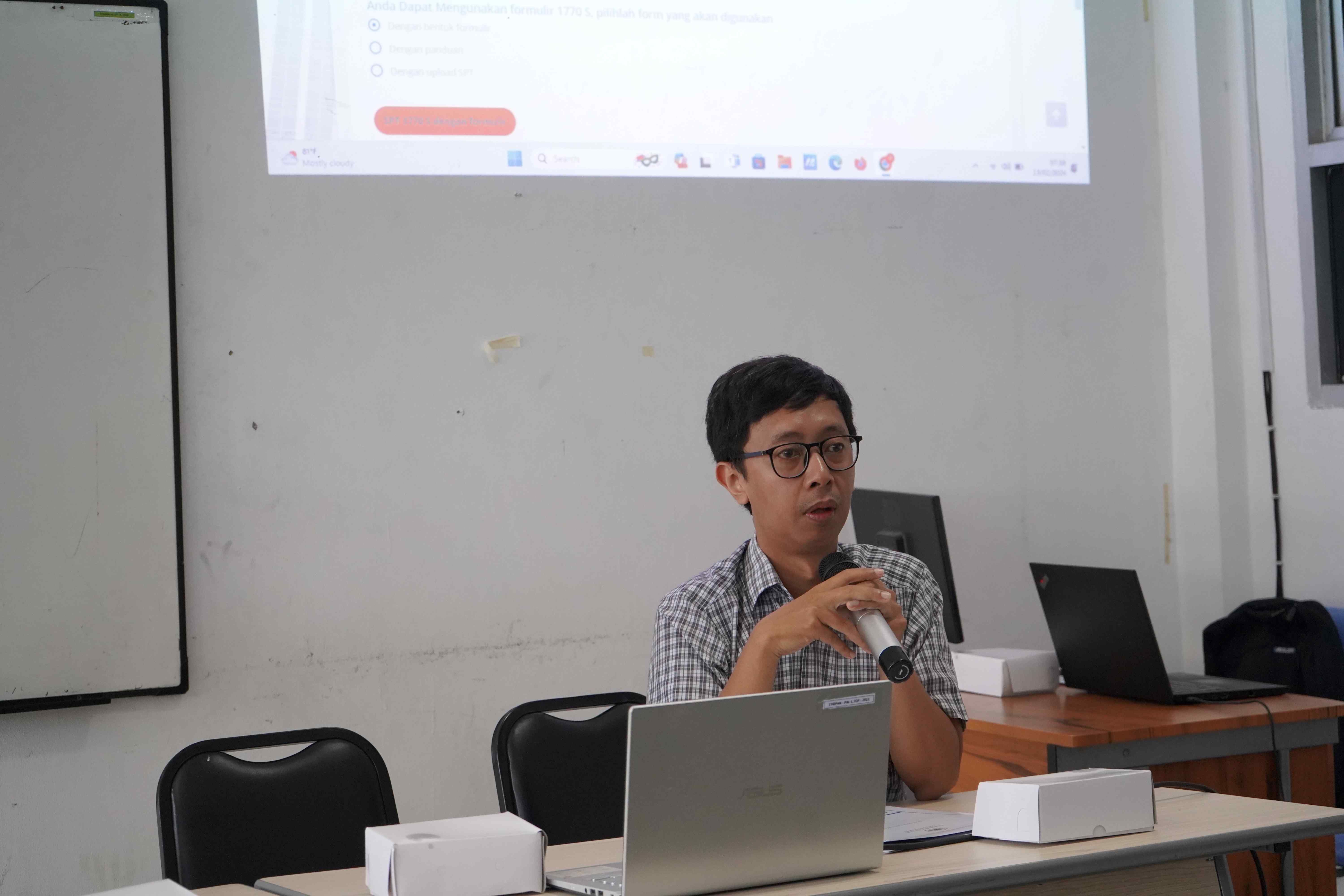 Agung Darmawan menyampaikan edukasi dengan penyampaian simulasi tata cara pelaporan SPT Tahunan bagi Wajib Pajak Orang Pribadi Karyawan. “Untuk pelaporan SPT Tahunan bagi Wajib Pajak Orang Pribadi Karyawan terlebih dahulu menyiapkan bukti potong yang telah diberikan oleh pemberi kerja,” jelas Agung.