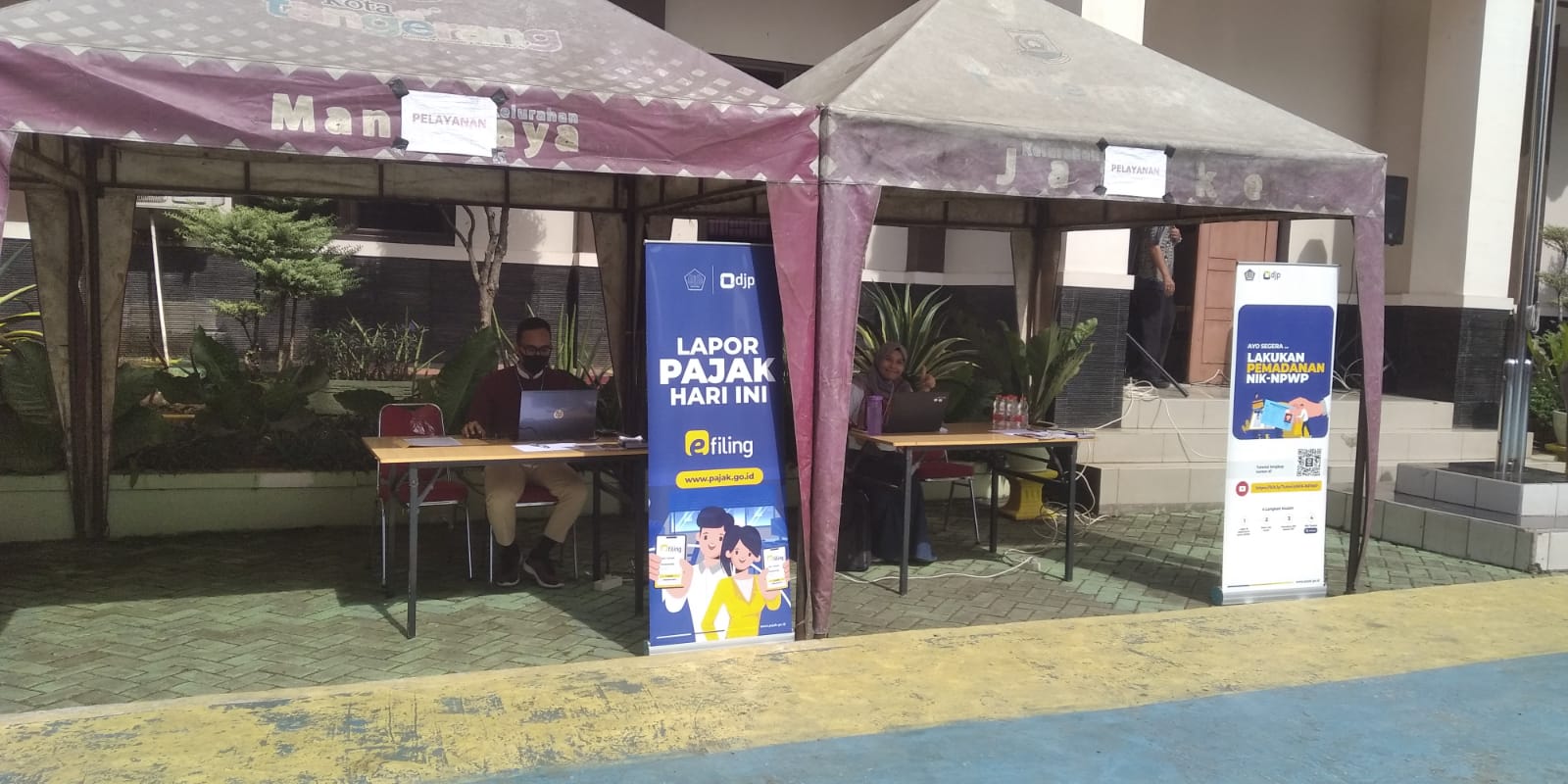 Pojok pajak hadir kembali memberikan pelayanan publik pada acara J-Expo 2023 yang digelar dalam rangka menyambut dan memeriahkan HUT Kota Tangerang ke-30. Penyuluh Pajak Ahli Pertama Yudho Risnanto dan Account Representative Bambang memberikan asistensi pemadanan NIK-NPWP serta pelaporan SPT Tahunan Orang Pribadi kepada wajib pajak yang datang ke lokasi.