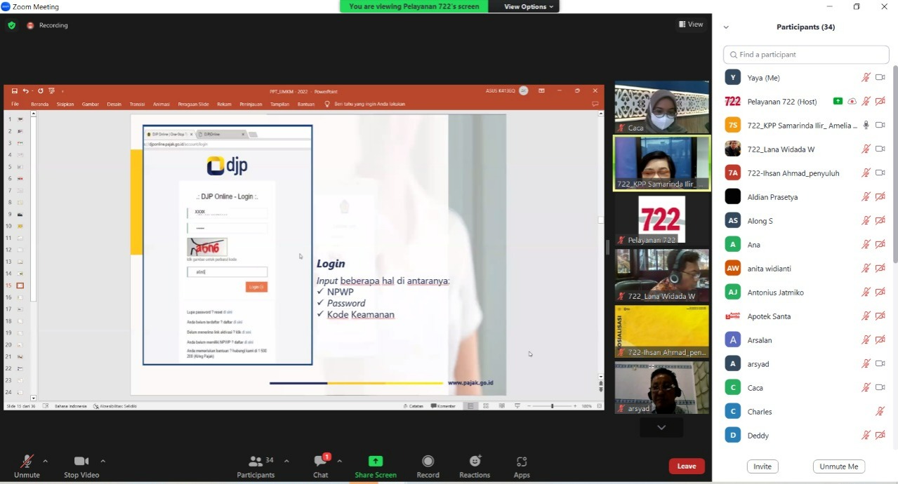 Kantor Pelayanan Pajak Pratama Samarinda Ilir menggelar Kelas Pajak Online dengan tema "Tata Cara Pelaporan Surat Pemberitahuan (SPT) Tahunan Pajak Penghasilan (PPh) Orang Pribadi Pelaku Usahawan" yang perdana di tahun 2023 melalui aplikasi Zoom Clouds Meeting di Kota Samarinda (Jumat, 6/1). Dimulai pukul 09.00 WITA, kelas pajak dihadiri oleh 34 peserta pelaku usahawan.