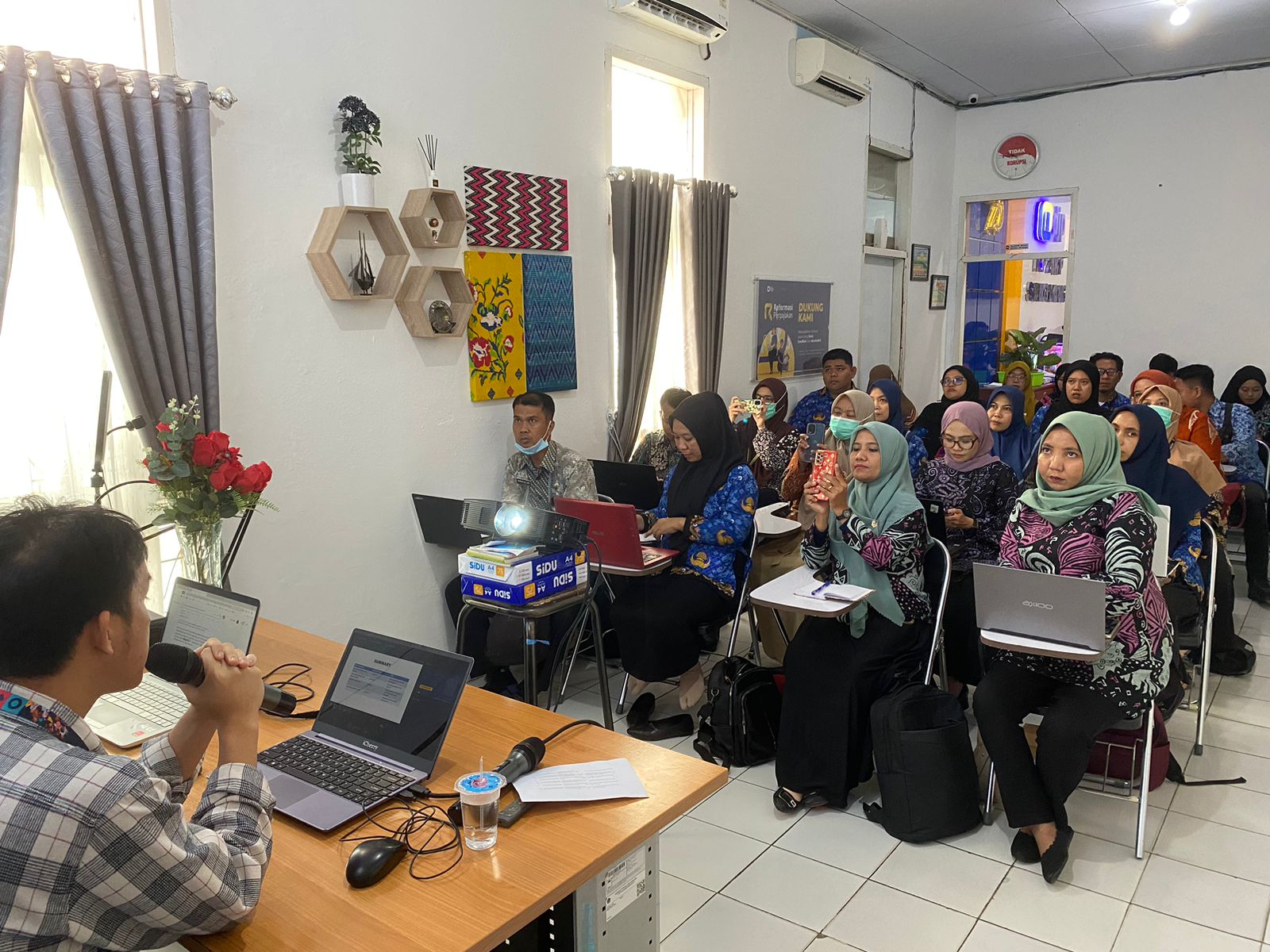 Selama ini, berdasakan data yang ada, Bapak Ibu sudah taat membayar pajak, tinggal kewajiban pelaporan SPT yang masih belum optimal dilaksanakan. Pelaksanan bimtek pagi ini diharapkan dapat membantu wajib pajak dalam melaksanakan kewajiban pelaporan sehingga dapat meningkatkan kepatuhan pelaporan SPT masa melalui layanan aplikasi e-Bupot PPh 21 dan SPT Unifikasi.