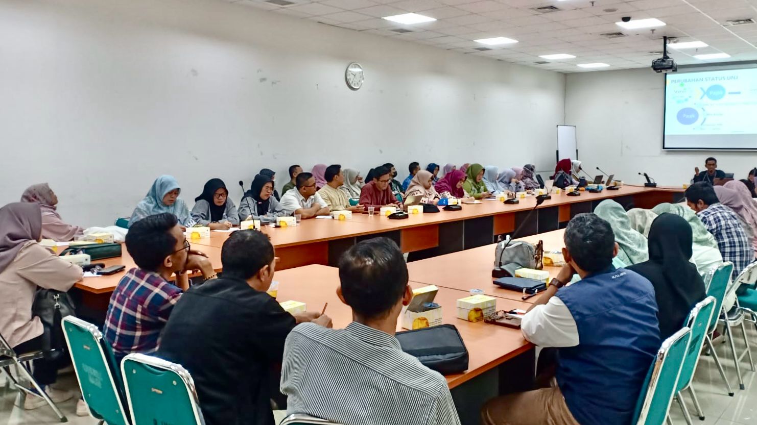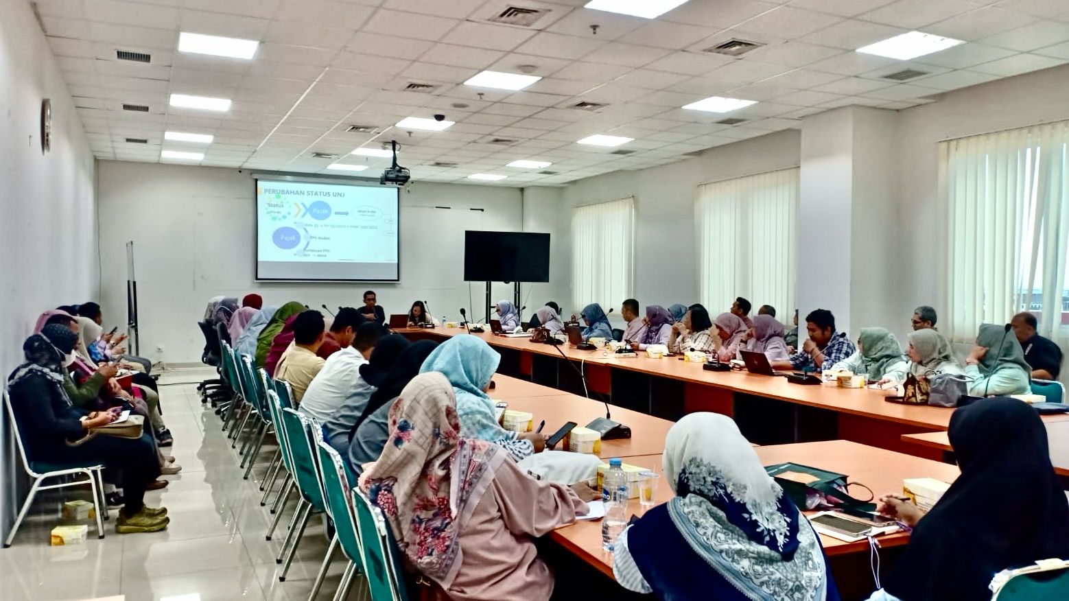Kantor Pelayanan Pajak (KPP) Pratama Jakarta Pulogadung bersama dengan Kementerian Pendidikan Tinggi, Sains, dan Teknologi, Universitas Negeri Jakarta menggelar kegiatan Sosialisasi Pajak (Selasa, 11/02). Kegiatan ini dilaksanakan di Ruang Rapat BMN lantai 6, Gedung M. Syafe’i, Universitas Negeri Jakarta. Sosialisasi ini diselenggarakan dalam rangka beralihnya status Universitas Negeri Jakarta menjadi Perguruan Tinggi Negeri Badan Hukum (PTN-BH).