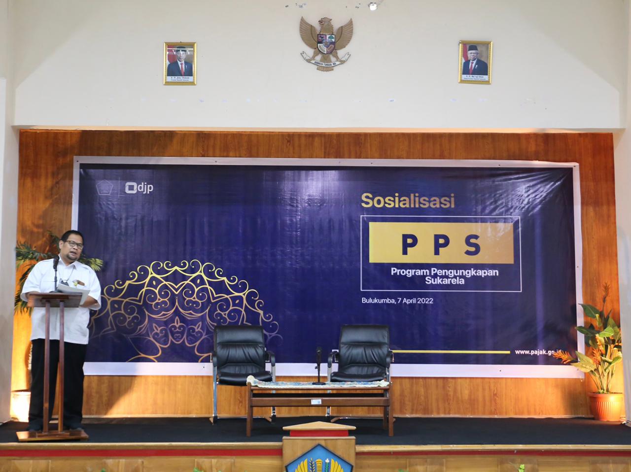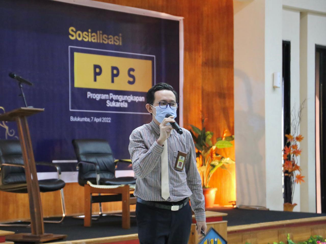 Kantor Pelayanan Pajak (KPP) Pratama Bulukumba menyelenggarakan kegiatan Sosialisasi Program Pengungkapan Sukarela (PPS) secara tatap muka yang bertempat di Aula KPP Pratama Bulukumba (Kamis, 07/04). Sebanyak 106 wajib pajak KPP Pratama Bulukumba menghadiri acara Sosialisasi PPS ini.