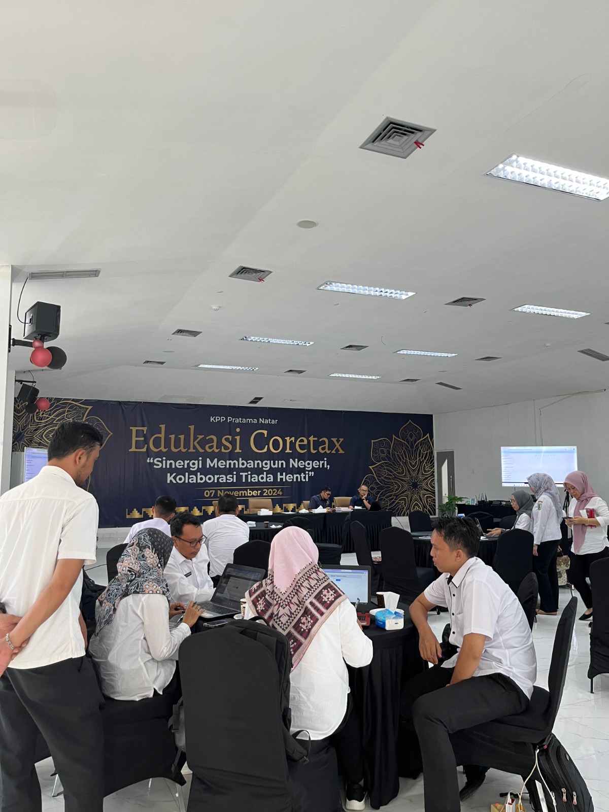 Kantor Pelayanan Pajak (KPP) Pratama Natar bersama dengan Kantor Wilayah Direktorat Jenderal Pajak (Kanwil DJP) Bengkulu dan Lampung serta Kantor Pelayanan Perbendaharaan Negara (KPPN) Bandar Lampung mengadakan audiensi terkait implementasi Coretax DJP dalam pelaksanaan hak dan kewajiban perpajakan bagi instansi pemerintah yang diselenggarakan di Aula KPP Pratama Natar, Kabupaten Lampung Selatan (Rabu, 12/2).