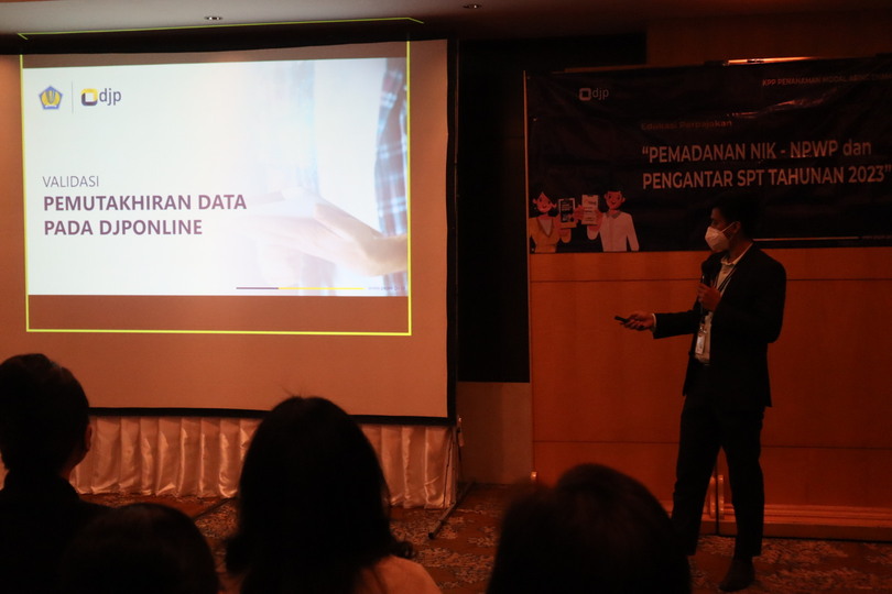 Kantor Pelayanan Pajak Penanaman Modal Asing Enam (KPP PMA Enam) mendatangi PT Mulia Intan Lestari untuk melakukan sosialisasi Pemadanan Nomor Induk Kependudukan (NIK) sebagai Nomor Pokok Wajib Pajak (NPWP) dan Pelaporan Surat Pemberitahuan (SPT) Tahunan kepada puluhan karyawan hotel di Hotel Mulia Senayan, Jakarta (Kamis, 26/1).