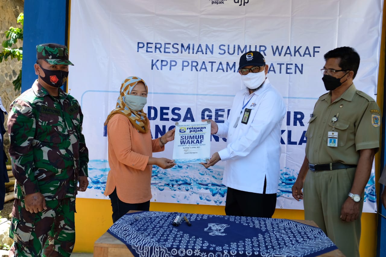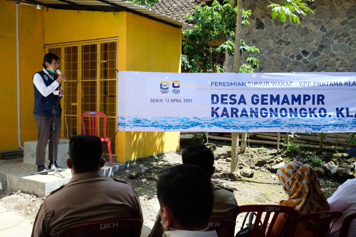 Kepala KPP Pratama Klaten Luky Priyanto meresmikan sumur wakaf di Desa Gemampir, Karangnongko, Kabupaten Klaten (Senin,12/4). Sumur wakaf ini sendiri merupakan program dari Relawan Pajak 525 (KPP Pratama Klaten), organisasi sosial kemanusiaan yang berada dibawah KPP Pratama Klaten. Sumur di Desa Gemampir ini merupakan sumur kedua yang dibangun oleh Relawan Pajak 525.