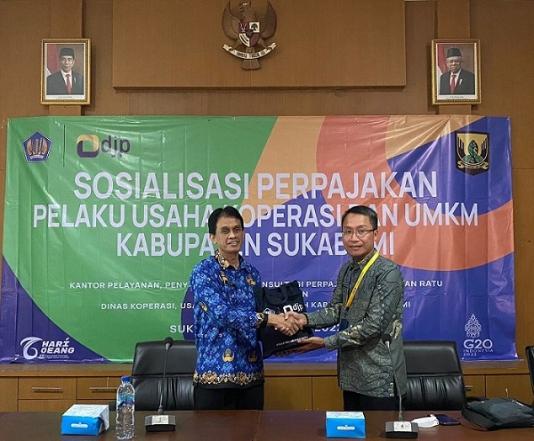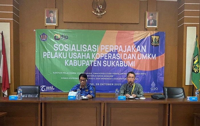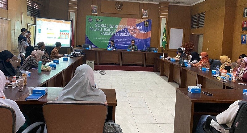 Kantor Penyuluhan, Pelayanan, dan Konsultasi Perpajakan (KP2KP) Pelabuhan Ratu menggelar Sosialisasi Perpajakan Bagi Pelaku Usaha Koperasi dan Pelaku Usaha Mikro, Kecil, dan Menengah (UMKM) di Aula Kantor Dinas Koperasi, Usaha Kecil dan Menengah Kabupaten Sukabumi, Jalan Raya Cibolang Kabupaten Sukabumi (Jumat, 28/10).