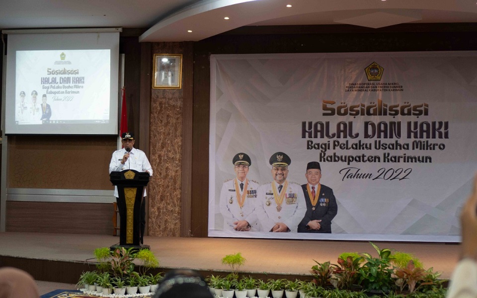 Kantor Pelayanan Pajak (KPP) Pratama Tanjung Balai Karimun menjadi salah satu narasumber pada kegiatan sosialisasi terkait Sertifikasi Halal dan Hak Kekayaan Intelektual (HAKI) yang dilaksanakan oleh Dinas Perdagangan, Koperasi, Usaha Kecil Menengah (UKM), dan Energi Sumber Daya Mineral (ESDM) Kabupaten Karimun di Aula Gedung Balai Nilam Sari Kantor Bupati Karimun, Kepulauan Riau (Rabu, 14/11). Acara diikuti oleh 200 orang peserta yang berasal dari berbagai pelaku UMKM di Kabupaten Karimun.