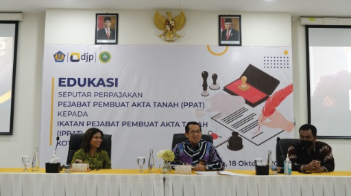 Kantor Pelayanan Pajak (KPP) Pratama Batam Utara mengadakan Sosialisasi Hak dan Kewajiban Perpajakan terkait Pajak Penghasilan (PPh) atas tanah dan/atau bangunan (PPHTB) bersama para Notaris/Pejabat Pembuat Akta Tanah (PPAT) yang tergabung dalam Ikatan Pejabat Pembuatan Akta Tanah (IPPAT) Kota Batam di Gedung Aula Barelang Kanwil DJP Kepulauan Riau (Selasa, 18/10).