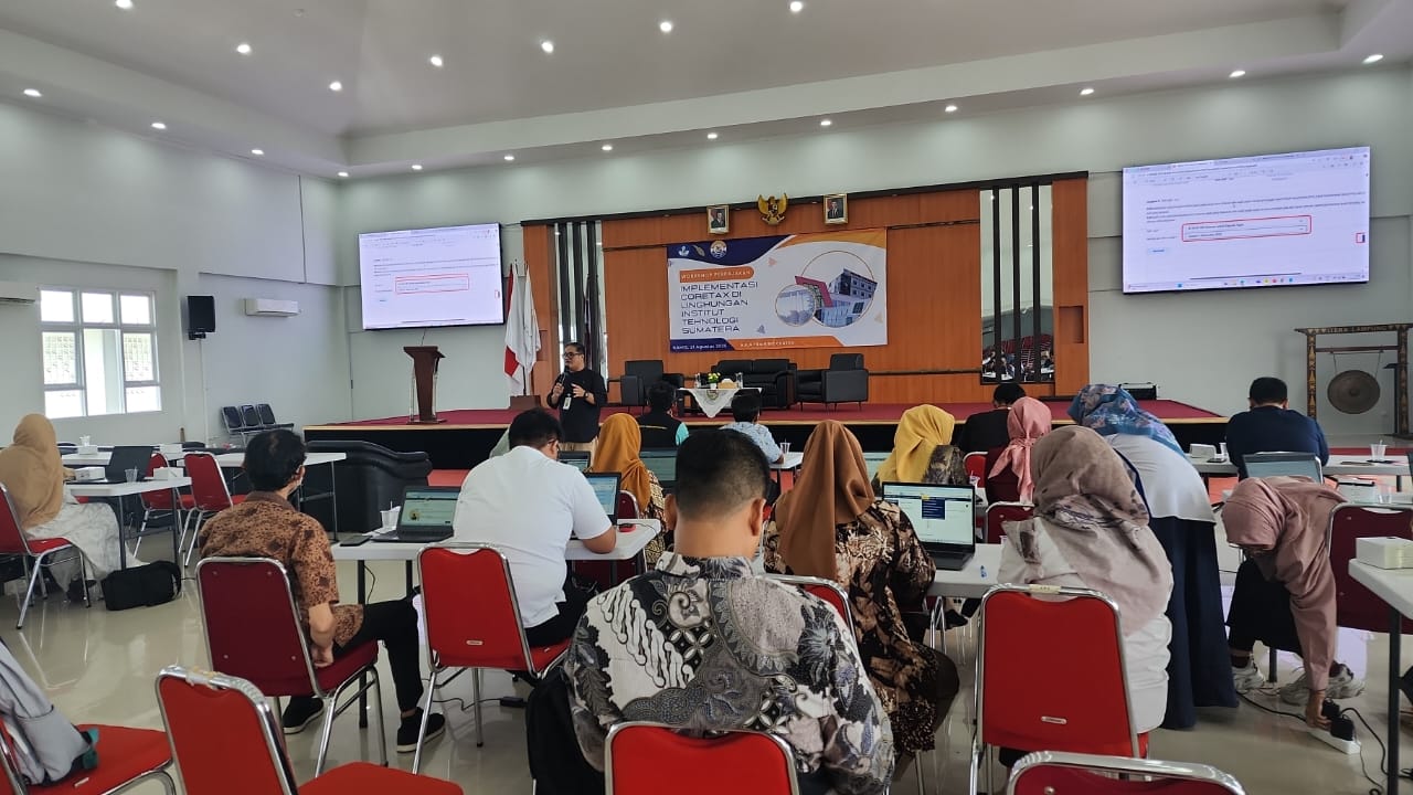 Kantor Pelayanan Pajak (KPP) Pratama Natar berkolaborasi dengan Institut Teknologi Sumatera (ITERA) melaksanakan edukasi perpajakan kepada bendahara instansi pemerintah terkait implementasi Coretax DJP di Gedung Kuliah Umum Institut Teknologi Sumatera (ITERA) Jalan Terusan Ryacudu, Desa Way Hui, Jati Agung, Lampung Selatan (Kamis, 21/8).
