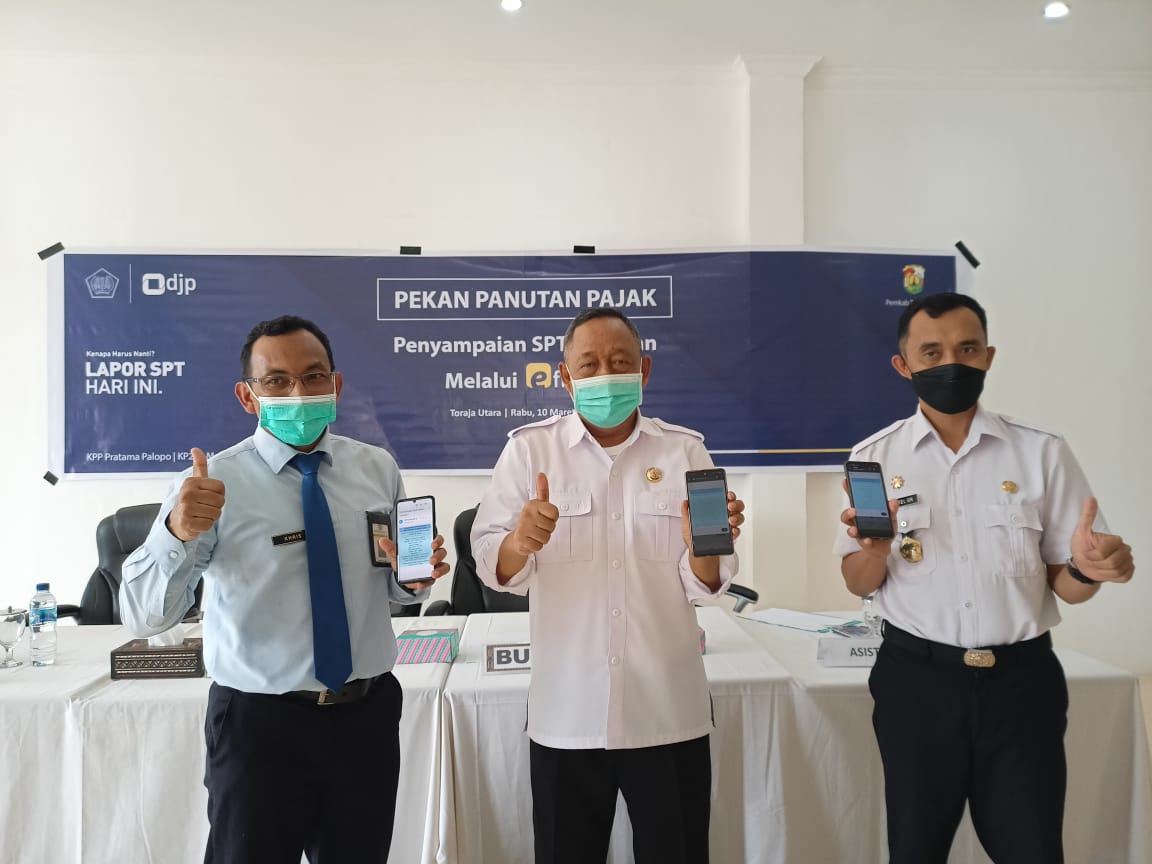 Kantor Pelayanan, Penyuluhan, dan Konsultasi Perpajakan (KP2KP) Makale dan Kantor Pelayanan Pajak (KPP) Pratama Palopo bersama Pemerintah Kabupaten Toraja Utara menggelar acara Pekan Panutan Pelaporan SPT Tahunan melalui e-Filing di Ruang Pola Kantor Bupati Kabupaten Toraja Utara (Rabu, 10/3).