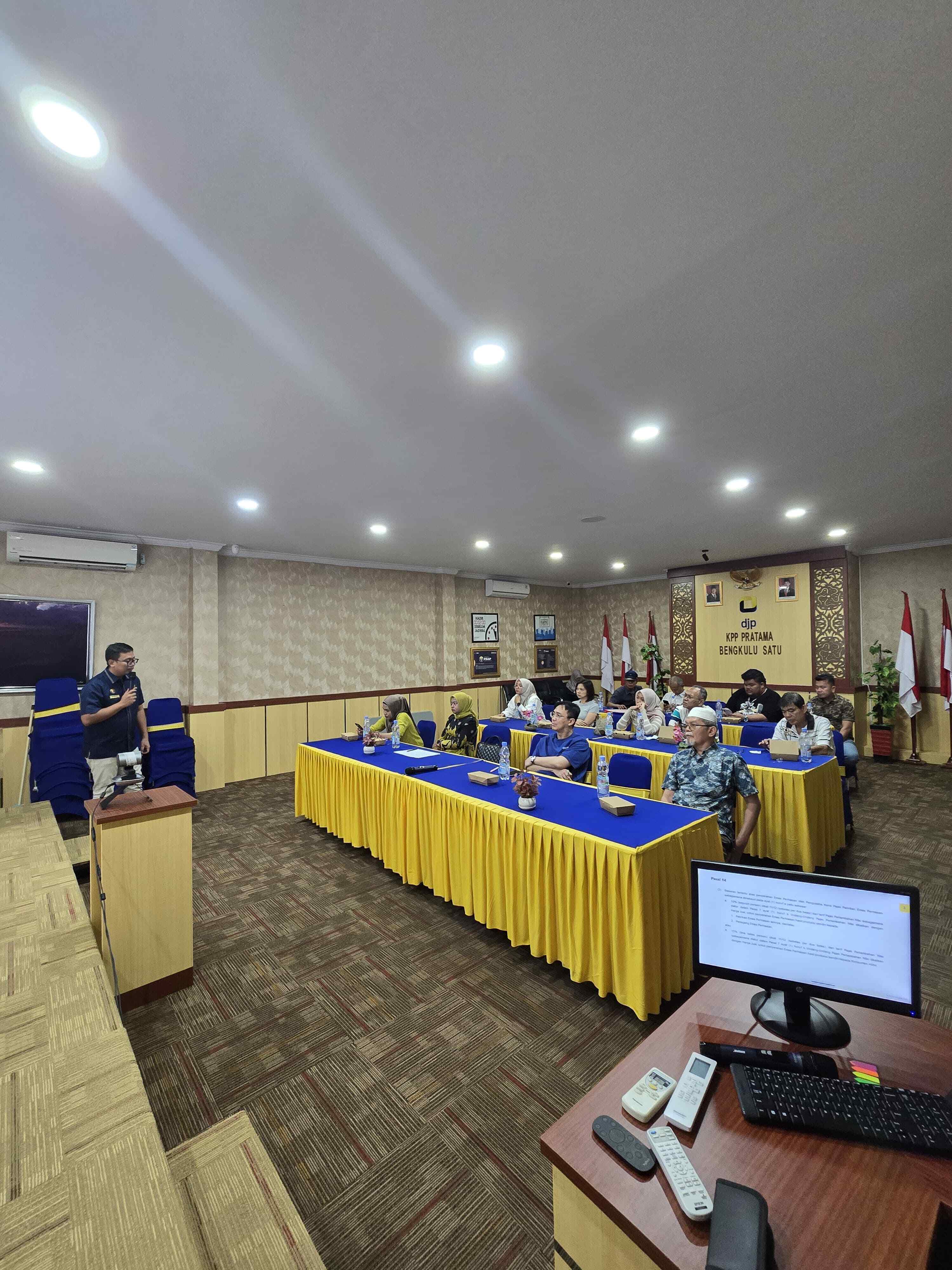 Kantor Pelayanan Pajak (KPP) Pratama Bengkulu Satu menyelenggarakan kelas pajak edisi pedagang emas di Aula Rafflesia KPP Pratama Bengkulu Satu, Kelurahan Anggut Atas, Kecamatan Ratu Samban, Kota Bengkulu (Rabu, 21/5). Kegiatan ini bertujuan untuk meningkatkan pemahaman pedagang emas terkait kewajiban perpajakan atas transaksi penjualan emas perhiasan maupun emas batangan.