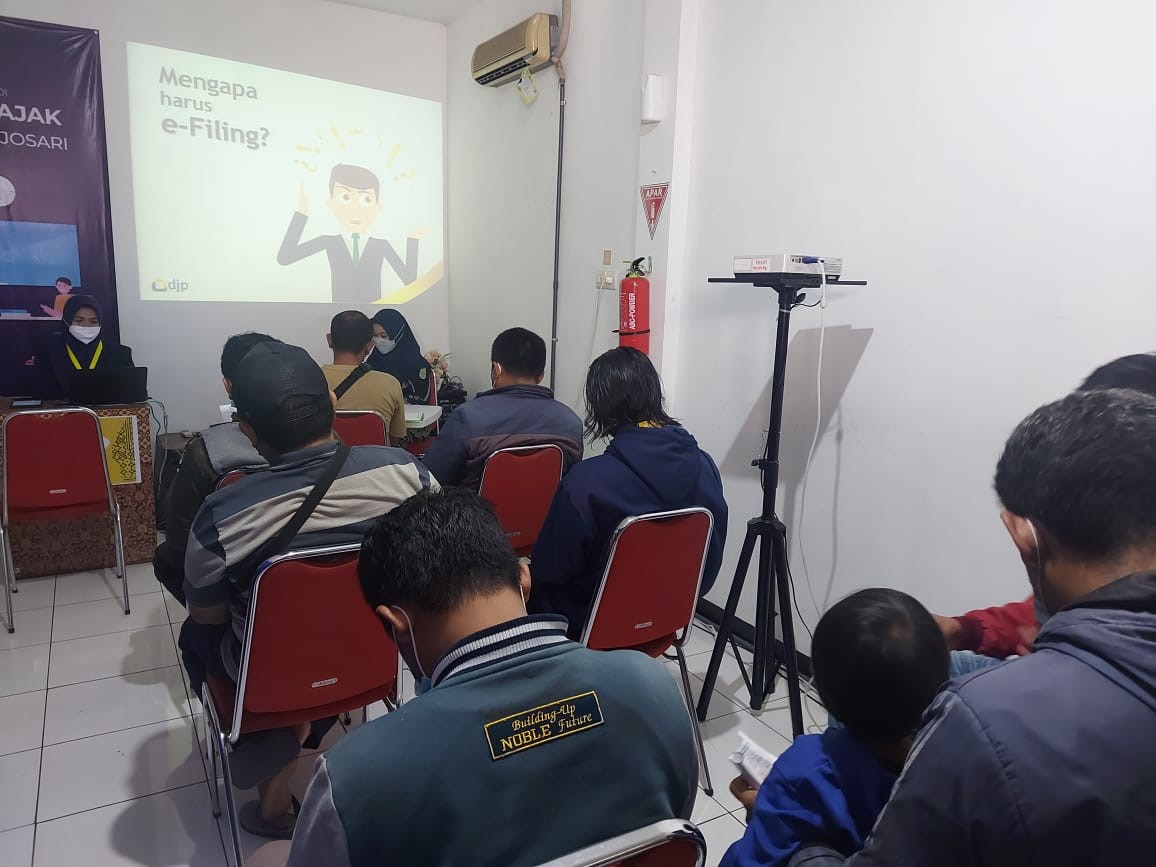 Kantor Pelayanan, Penyuluhan, dan Konsultasi Perpajakan (KP2KP) Mojosari mengadakan kelas pajak secara luring dengan tema Panduan Pengisian SPT Tahunan Melalui e-Filing di KP2KP Mojosari, Kab. Mojokerto (Selasa, 29/3).