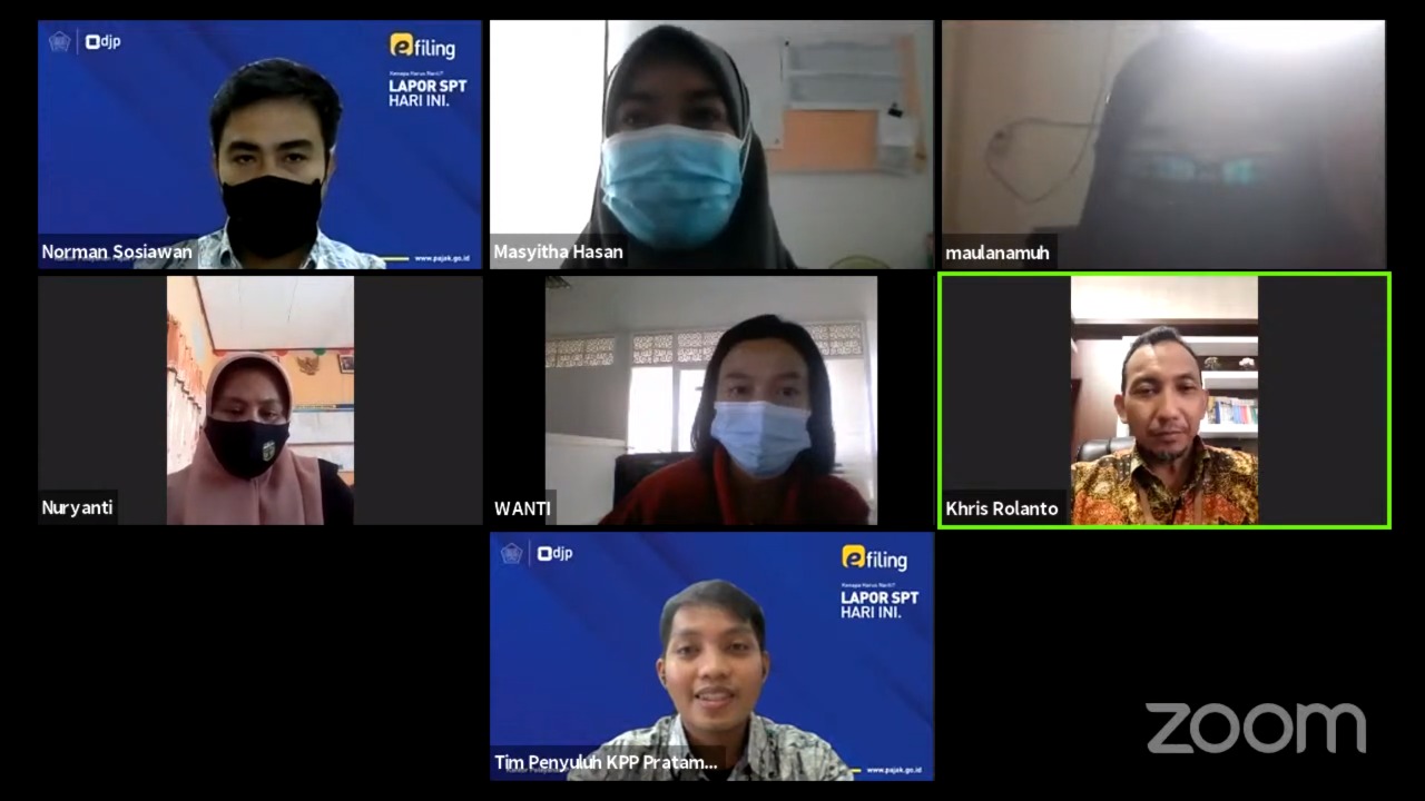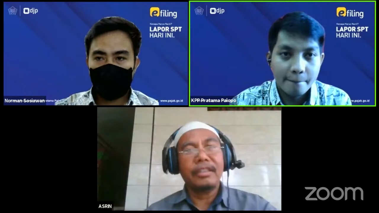 Kantor Pelayanan Pajak (KPP) Pratama Palopo mengadakan Kelas Pajak SPT Tahunan Orang Pribadi (Jumat, 26/2). Dari KPP Pratama Palopo, kelas pajak ini dilaksanakan secara daring melalui aplikasi Zoom. Peserta merupakan Wajib Pajak Orang Pribadi Karyawan yang telah mendapatkan Bukti Pemotongan 1721-A2.