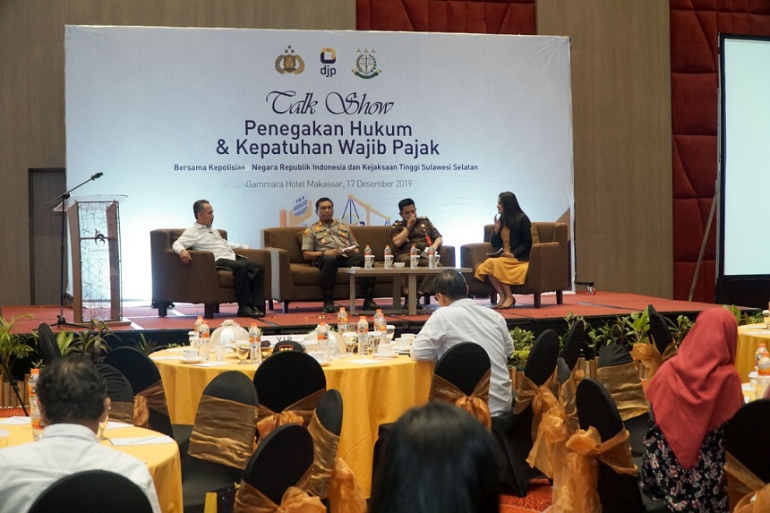 Kanwil DJP Sulawesi Selatan, Barat, dan Tenggara (Sulselbartra) mengadakan Talkshow Perpajakan dengan tajuk 'Penegakan Hukum dan Kepatuhan Wajib Pajak' (Selasa, 17/12). Dalam acara yang dilangsungkan di Hotel Gammara Makassar ini, hadir perwakilan dari Polrestabes Makassar dan Kejaksaan Tinggi Sulsel selaku mitra kerja.