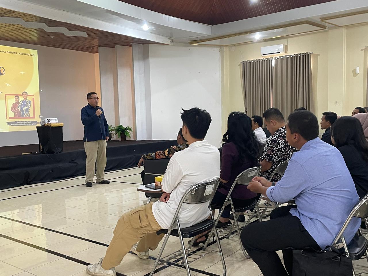 Acara dilanjutkan dengan penyampaian materi dari Bank Lampung yang diwakili oleh Agnes. Ia menyampaikan apresiasi kepada KPP Pratama Bandar Lampung Satu karena telah menjembatani kerja sama dengan UKM.