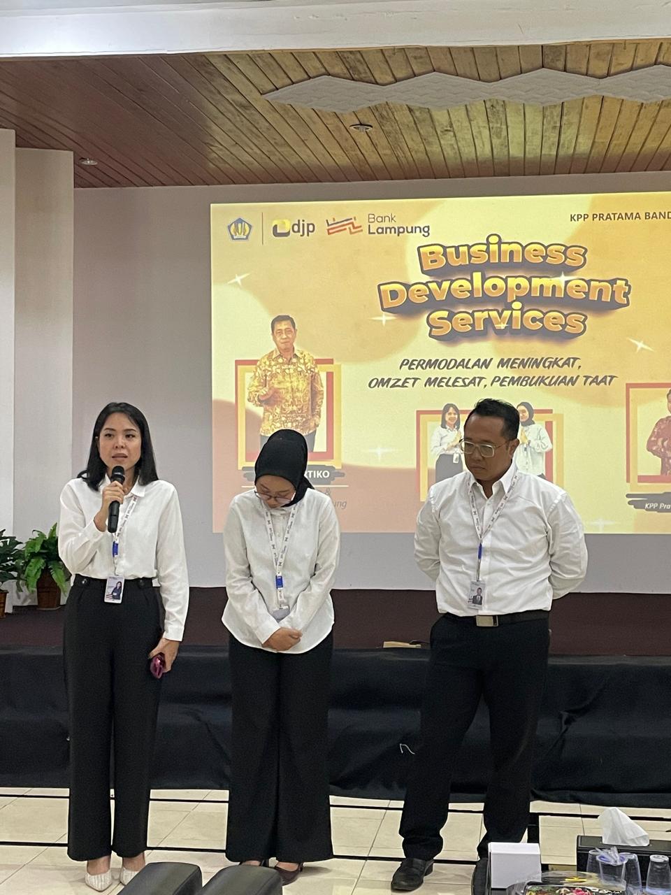 Lebih dari tiga puluh Usaha Kecil Menengah (UKM) mengikuti Business Development Services (BDS) yang diadakan oleh Kantor Pelayanan Pajak (KPP) Pratama Bandar Lampung Satu di Aula KPP Pratama Bandar Lampung Satu, Kota Bandar Lampung (Rabu, 29/1). Kegiatan ini sebagai bukti keberpihakan pajak pada UKM di Bandar Lampung.