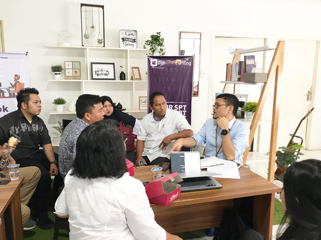 Kantor Pelayanan Penyuluhan dan Konsultasi Perpajakan (KP2KP) Perdagangan menggelar Bimbingan Teknis (Bimtek) pembuatan bukti potong (bukpot) 1721-A2 dan pendampingan e-Filing kepada bendahara di wilayah Perdagangan (Rabu, 5/2). Berlangsung di Pojok Santai KP2KP Perdagangan, Bimtek ini dihadiri Bendahara Sekolah Dasar dan Menengah.