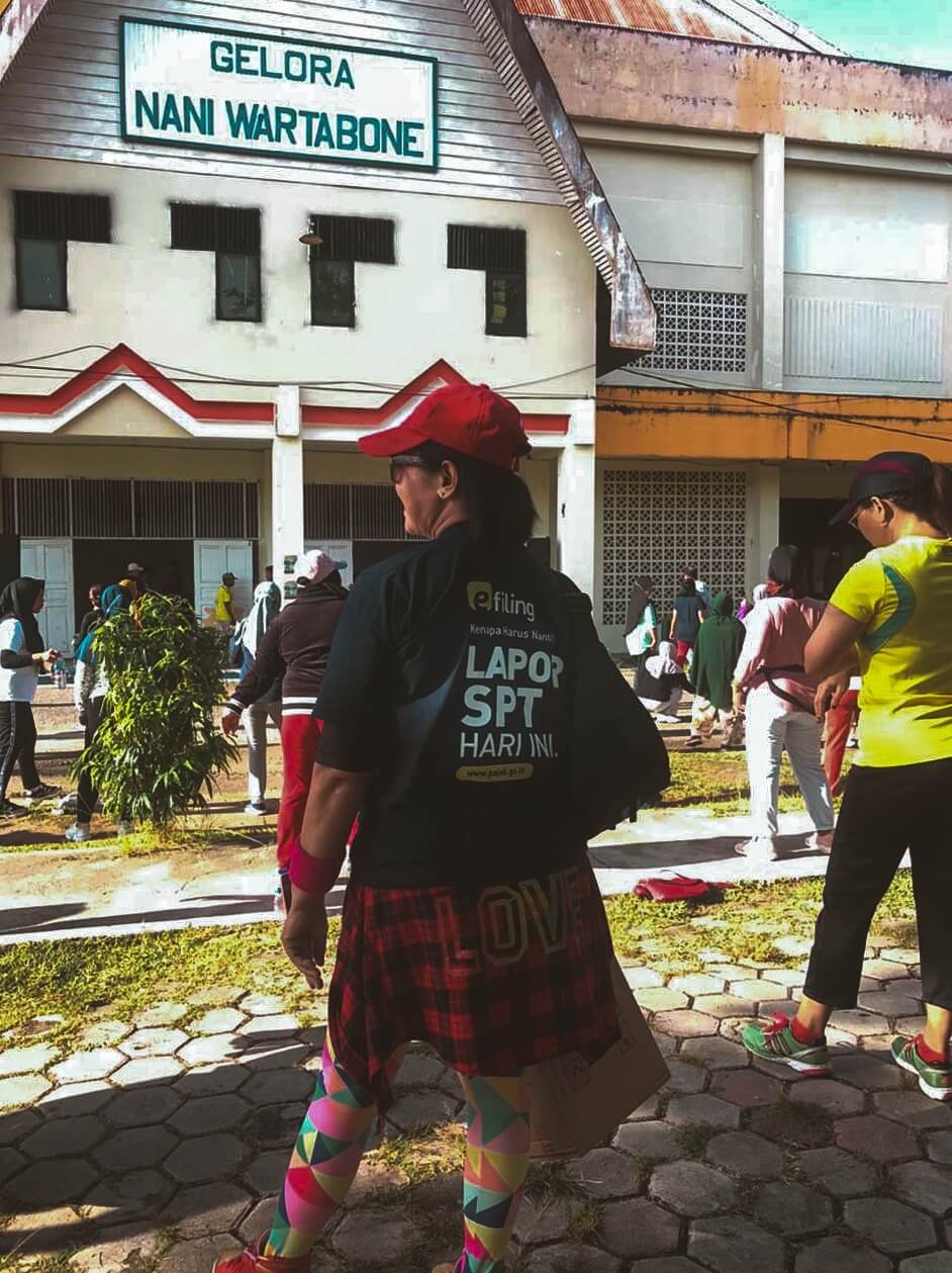 Selain pojok pajak, di GOR Nani Wartabone juga ada kegiatan senam bersama, Delapan instruktur senam ikut meramaikan kampanye pajak dengan mengenakan kaus dengan tema Lapor SPT Hari Ini.