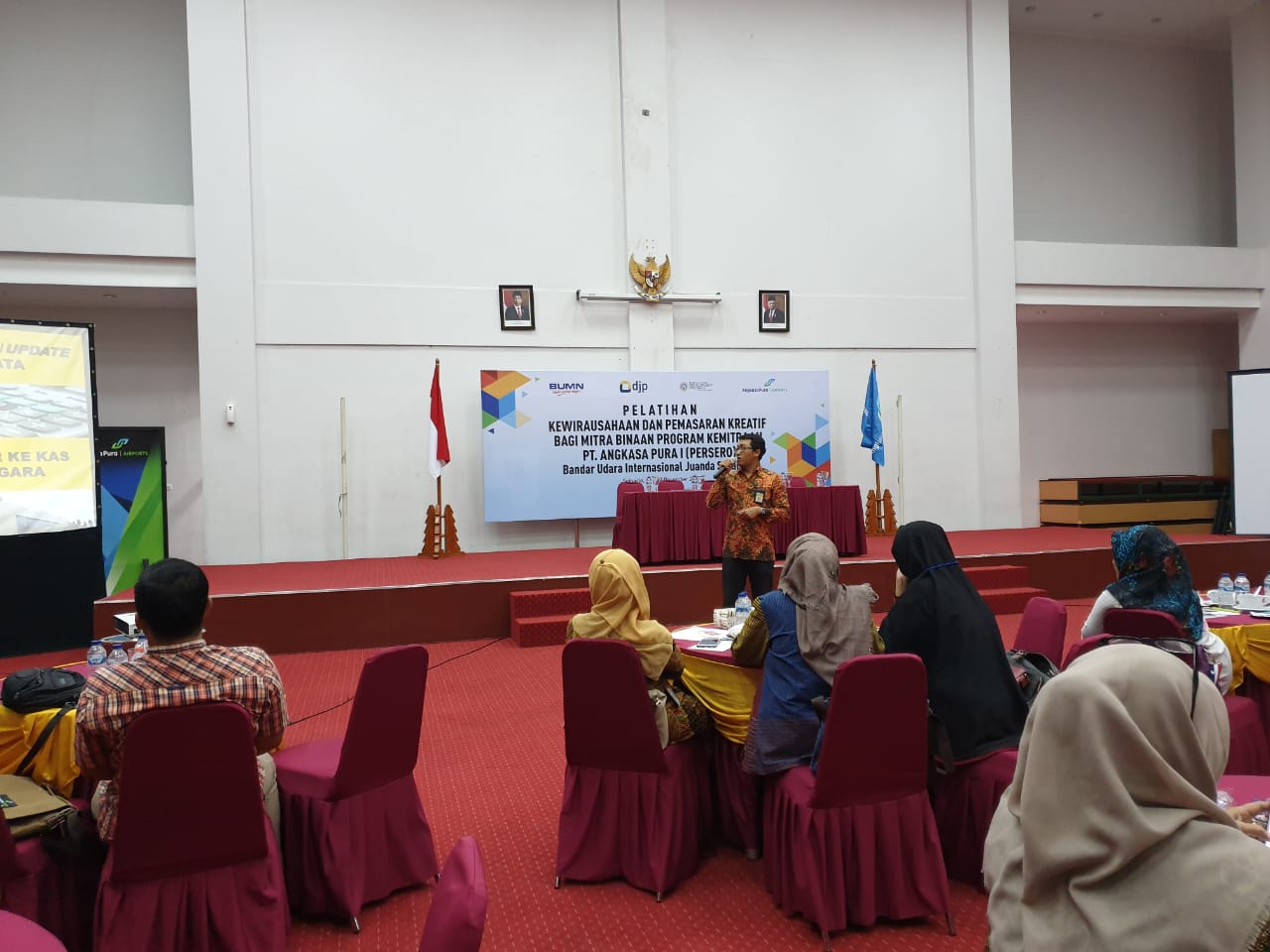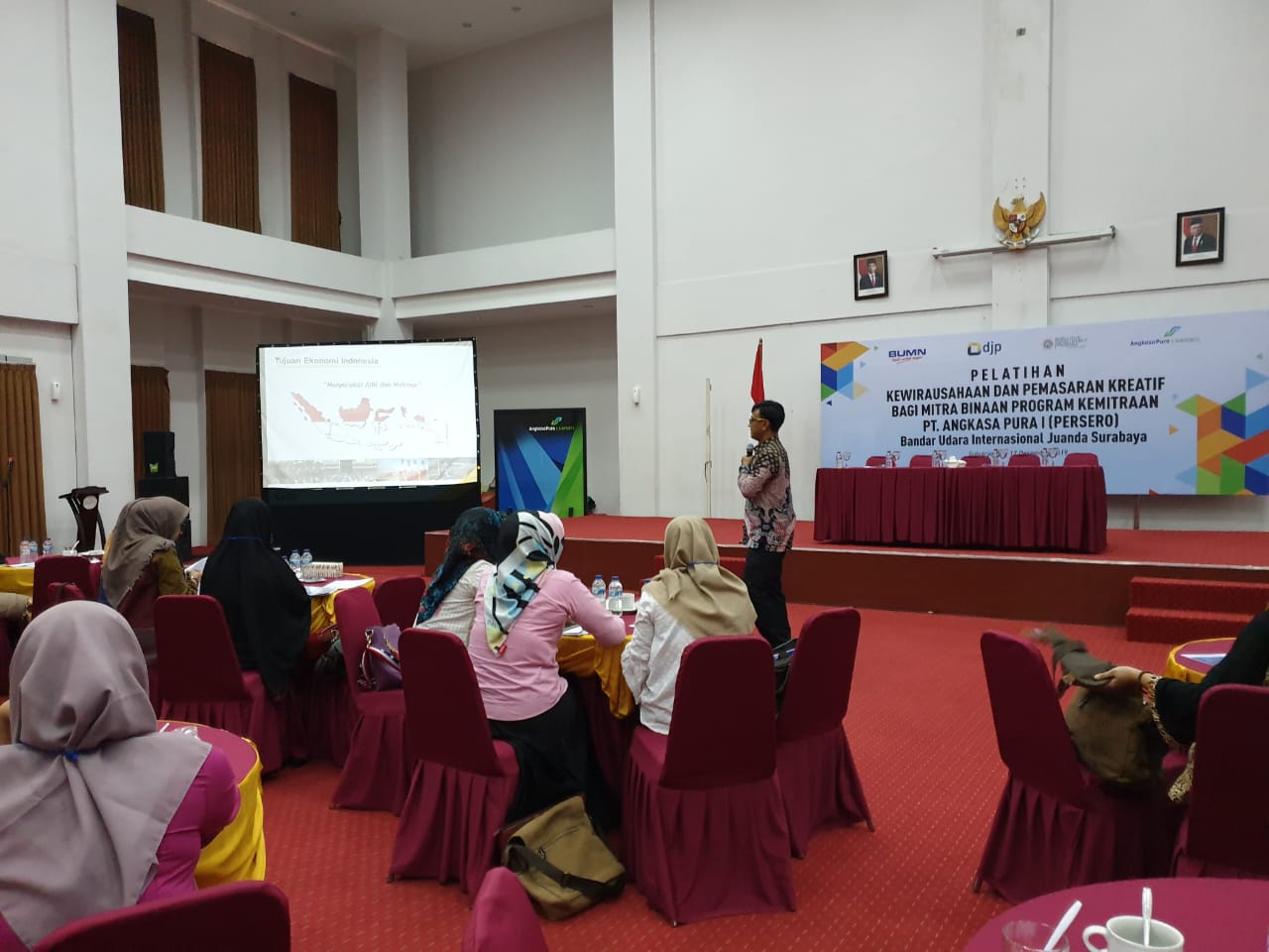 Kanwil DJP Jawa Timur II menjadi narasumber dalam acara Pelatihan Kewirausahaan dan Pemasaran Kreatif bagi Mitra Binaan Program Kemitraan PT Angkasa Pura I (Persero) Bandar Udara Internasional Juanda Surabaya yang bertempat di Gedung Serba Guna Graha Satu, Bandara Juanda, Surabaya (Selasa, 17/12). Acara ini diadakan selama dua hari sejak Senin, 16 Desember 2019.