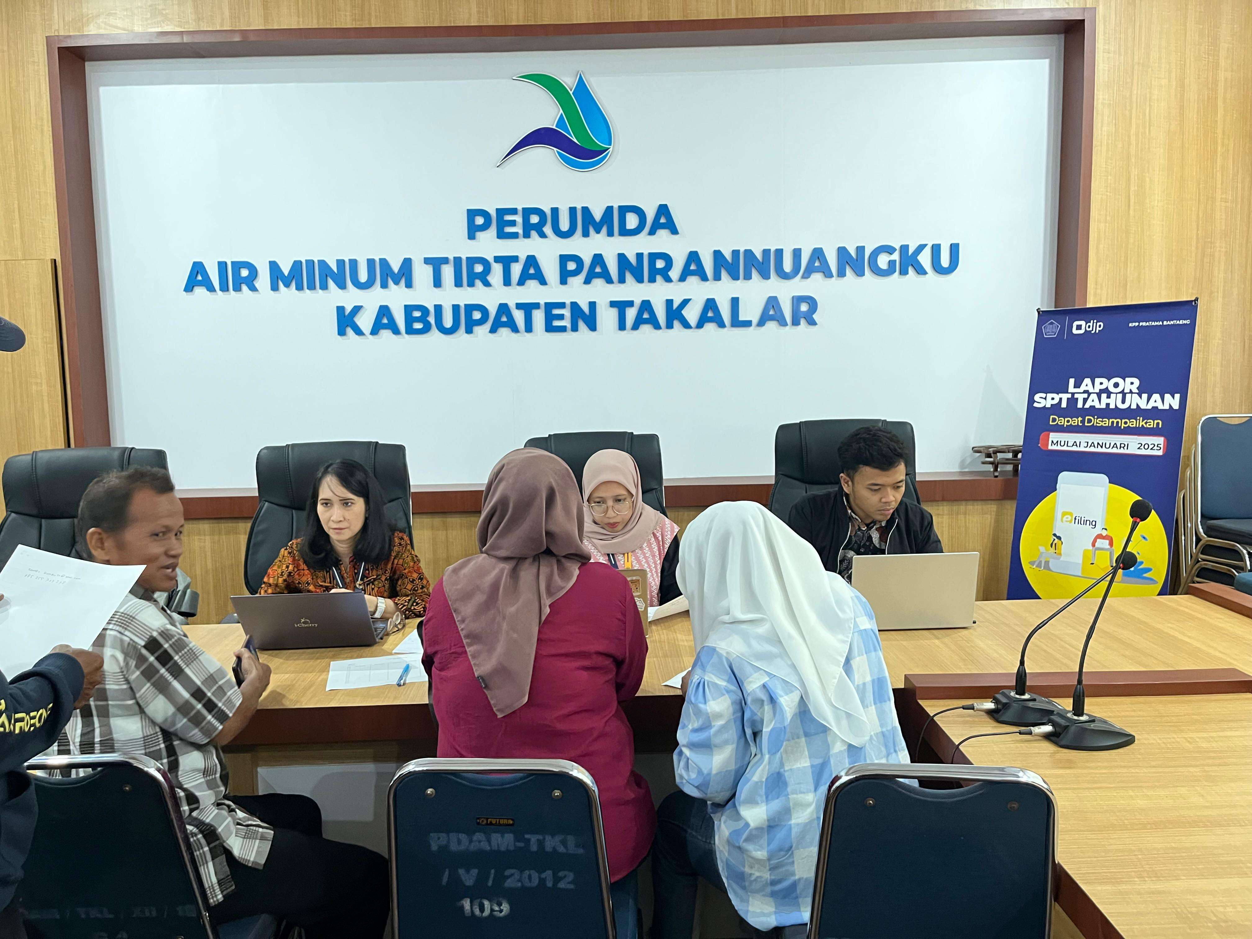 Kantor Pelayanan, Penyuluhan, dan Konsultasi Perpajakan (KP2KP) Takalar mengadakan kegiatan asistensi pelaporan Surat Pemberitahuan (SPT) Tahunan Pajak Penghasilan (PPh) Orang Pribadi tahun pajak 2024 bagi pegawai Perusahaan Daerah Air Minum (PDAM) Takalar (Jumat, 21/03). Acara ini berlangsung di Ruang Rapat PDAM Takalar mulai pukul 10.00 WITA.