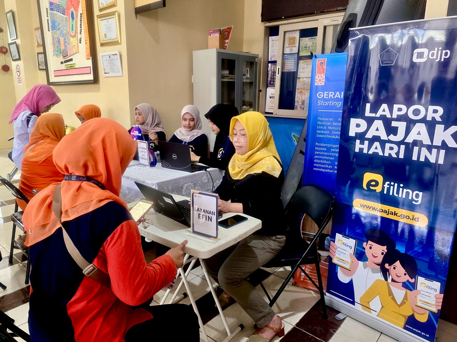 Bersama dengan Tim KPP Pratama Jakarta Pulogadung, wajib pajak yang berkunjung dibimbing secara langsung untuk melaporkan SPT Tahunan Orang Pribadi melalui DJP Online. Bagi masyarakat yang belum melakukan aktivasi EFIN atau sudah pernah memiliki EFIN, namun hilang atau lupa, dapat mengajukan permohonan EFIN.
