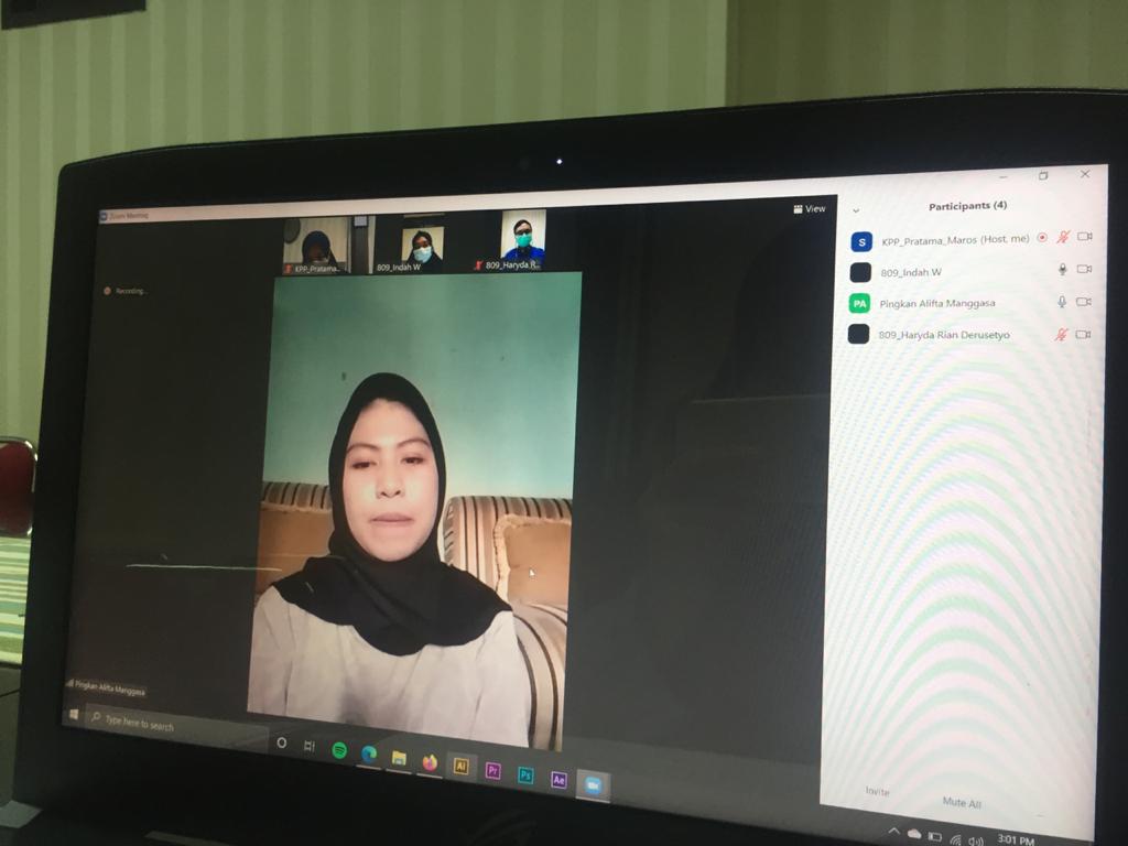 Kantor Pelayanan Pajak (KPP) Pratama Maros mewawancarai calon Relawan Pajak secara daring melalui aplikasi Zoom Meeting di ruang rapat KPP Pratama Maros, Maros (Rabu, 20/1). Kegiatan ini diadakan sebagai tindak lanjut dari program pendaftaran relawan pajak tahun 2021 oleh Kanwil DJP Sulselbartra di mana KPP Pratama Maros menjadi salah satu mitra organisasi yang menyelenggarakan pendaftaran sekaligus seleksi calon relawan pajak.