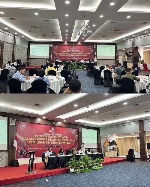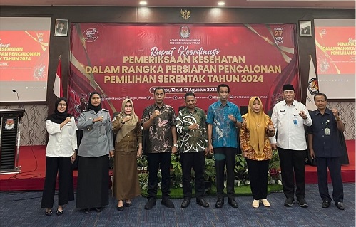 Kantor Pelayanan Pajak Pratama Ternate memenuhi undangan Komisi Pemilihan Umum (KPU) Provinsi Maluku Utara dalam Rapat Koordinasi Persiapan Pemeriksaan Kesehatan dalam Pemilihan Serentak Tahun 2024. Kegiatan ini bertempat di Aula Hotel Muara Santiong, Kota Ternate, Maluku Utara (Senin, 12/8).