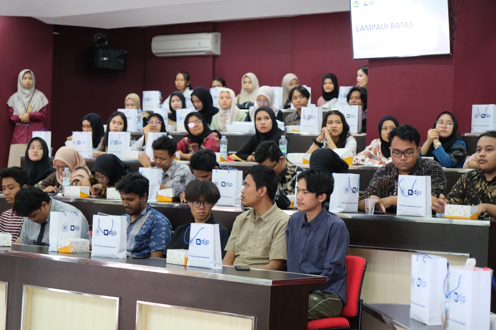 Kantor Pelayanan Pajak (KPP) Pratama Jakarta Kembangan berkolaborasi dengan Universitas Mercu Buana menggelar Tax Goes To Campus (TGTC) bertempat di Ruang Auditorium Profesor Harun Zain Universitas Mercu Buana, Kembangan, Jakarta Barat (Kamis, 24/10). Bertajuk "Lampaui Batas, Bangkit Untuk Indonesia Emas" TGTC dihadiri oleh 104 mahasiswa Fakultas Ekonomi dan Bisnis Universitas Mercu Buana.