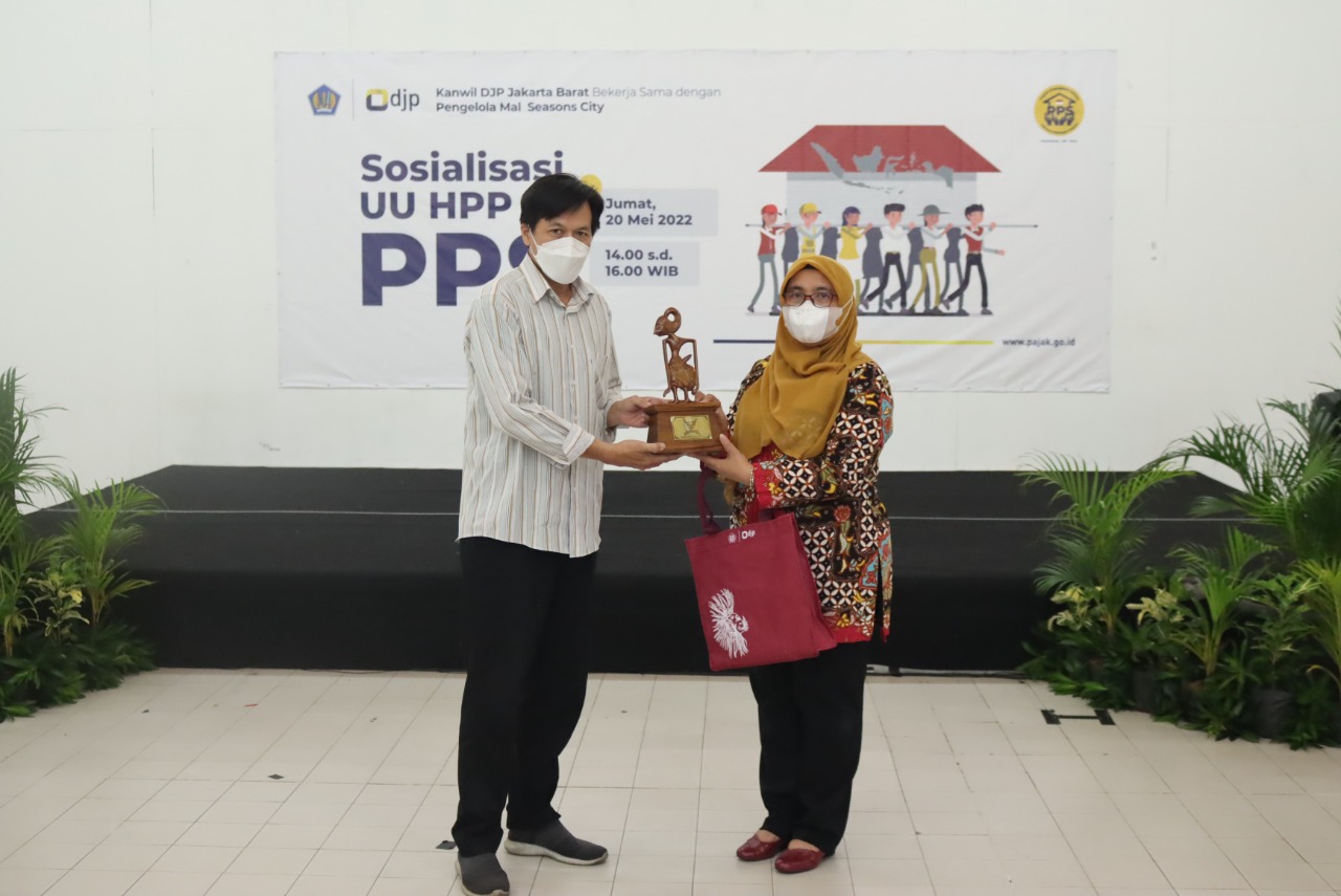 Sebelum kegiatan sosialisasi berakhir, Kanwil DJP Jakarta Barat memberikan cendera mata sebagai wujud sinergi antara kedua pihak.