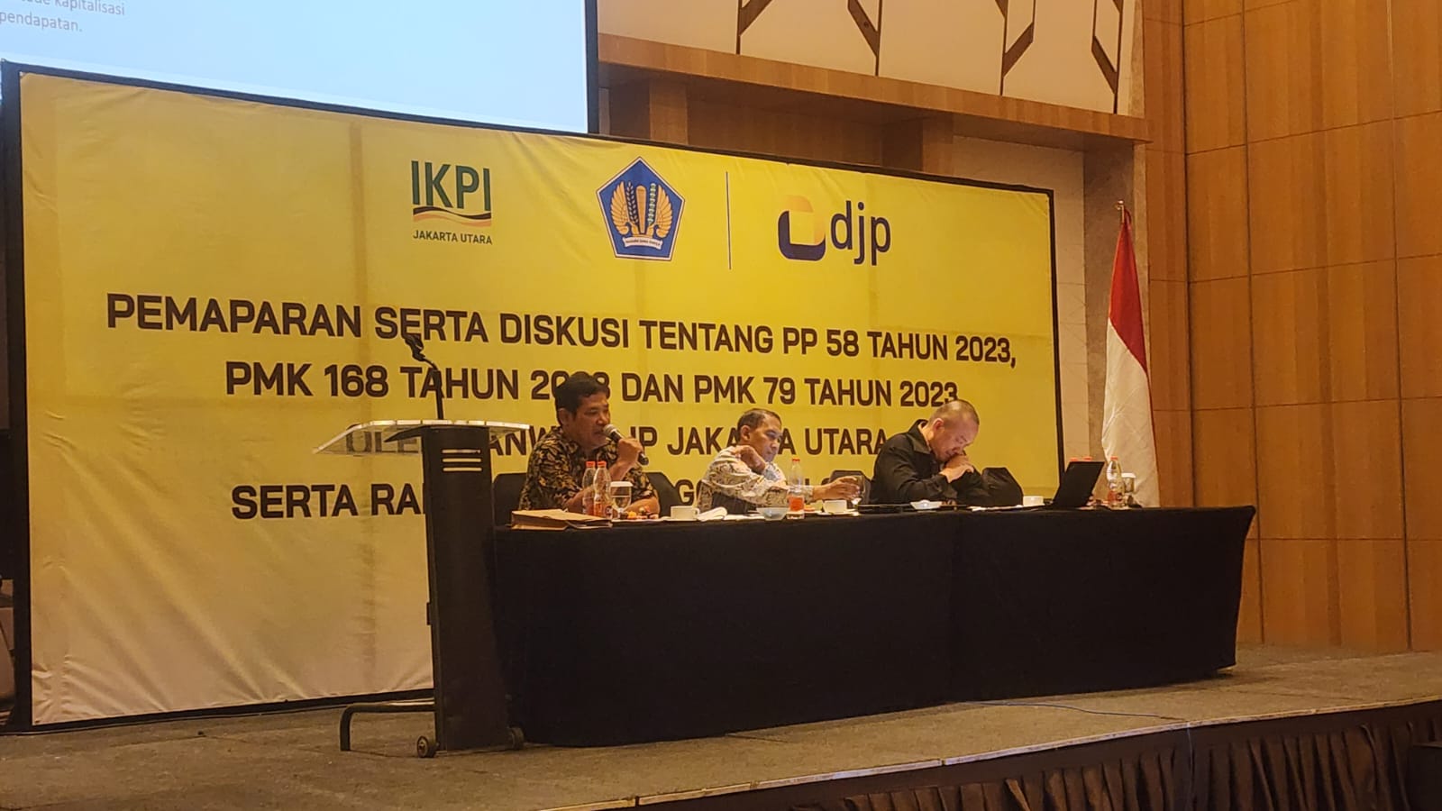 Kantor Wilayah Direktorat Jenderal Pajak (Kanwil DJP) Jakarta Utara bekerjasama dengan Ikatan Konsultan Pajak Indonesia (IKPI) Cabang Jakarta Utara mengadakan kegiatan Pemaparan Serta Diskusi tentang PP 58 tahun 2023, PMK 168 tahun 2023, dan PMK 79 tahun 2023 di Jakarta (Selasa, 16/1). Kegiatan dilaksanakan pukul 09.00 sampai 15.00 WIB, diikuti 90 anggota IKPI cabang Jakarta Utara dan dihadiri Ketua Departemen PPL dan Wakil Sekretaris IKPI Pusat serta Ketua IKPI cabang Jakarta Utara.