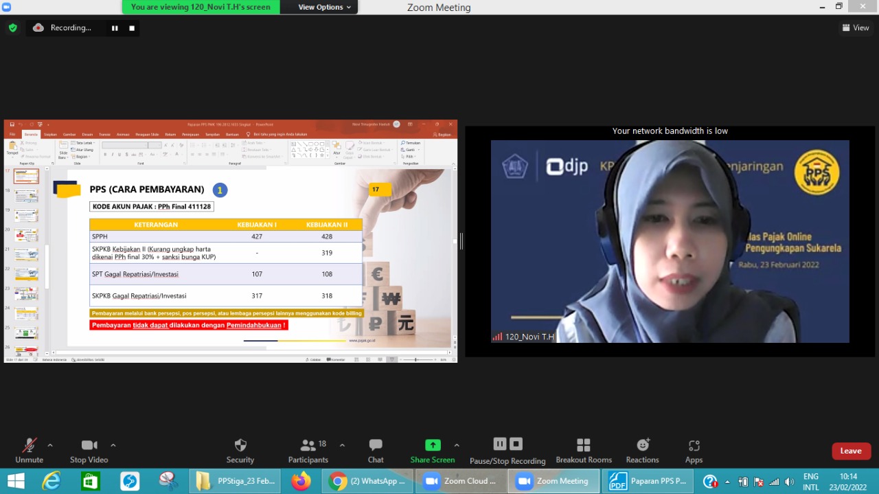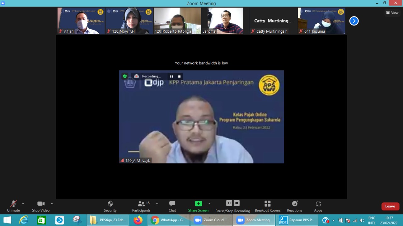 Kanwil DJP Jakarta Utara dan KPP Pratama Jakarta Penjaringan lakukan kolaborasi berikan sosialisasi Program Pengungkapan Sukarela (PPS) di Jakarta (Kamis, 23/2). Acara dibuka Robert Fungsional Penyuluh Pajak Madya Kanwil DJP Jakarta Utara. Materi dipaparkan Novi dan Najib Penyuluh Pajak Kanwil DJP Jakarta Utara, serta Alfian penyuluh KPP Pratama Jakarta Penjaringan dan dihadiri 10 wajib pajak.