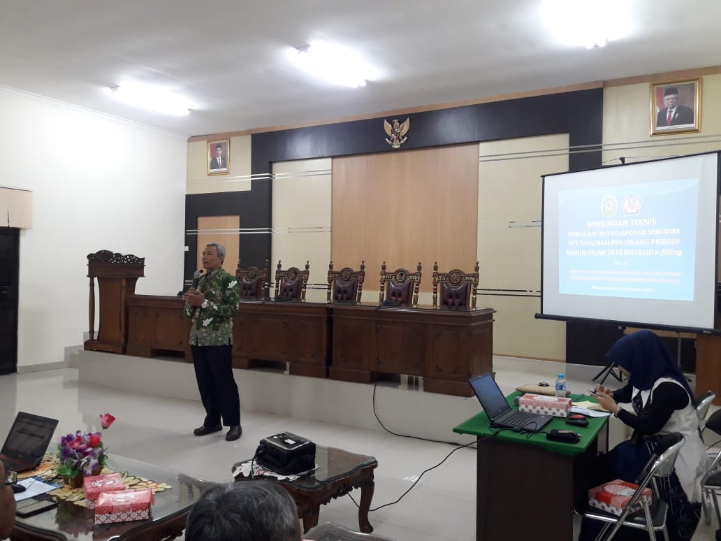 Kanwil DJP Kalimantan Selatan dan Tengah memberikan bimbingan teknis pelaporan SPT Tahunan melalui e-Filling di Pengadilan Negeri Kelas 1A Banjarmasin (Jumat, 7/2). Bimbingan teknis kali ini diikuti oleh segenap pegawai Pengadilan Negeri Kelas 1A Banjarmasin yang berada di kantor.
