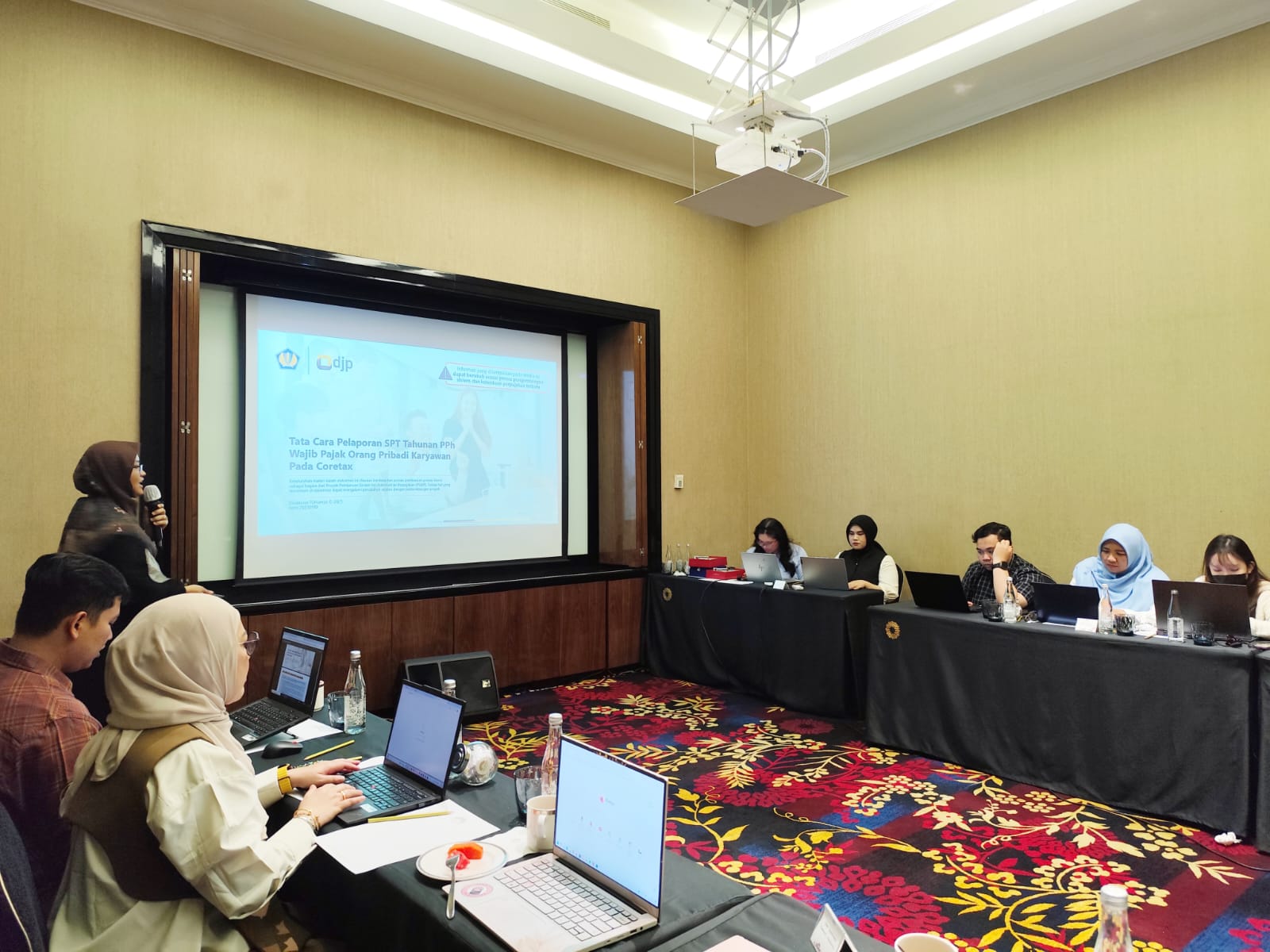 Tim Kantor Pelayanan Pajak (KPP) Wajib Pajak Besar Tiga hadir memberikan edukasi dalam Focus Group Discussion bertajuk “Implementasi SPT Tahunan Badan dan Orang Pribadi Tahun 2025 melalui Coretax” kepada jajaran karyawan Pertamina Trans Kontinental Group di Hotel Trans Bandung, Kota Bandung (Jumat, 17/10).