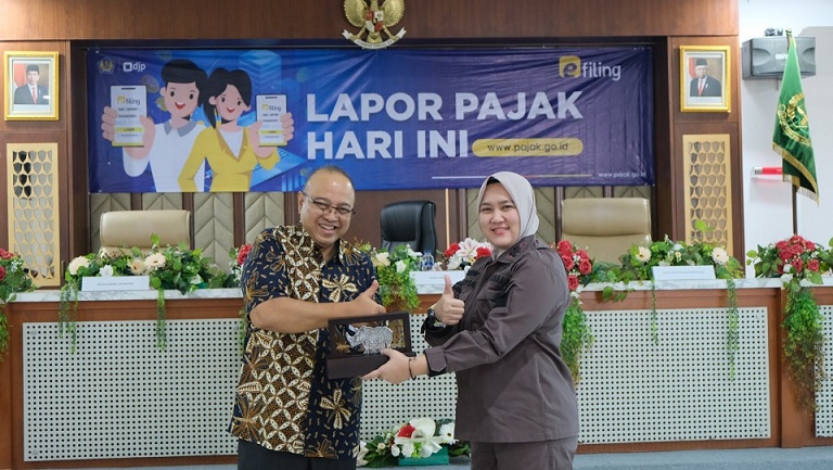 Kepala Kantor Wilayah Direktorat Jenderal Pajak (Kanwil DJP) Banten bersama Kepala Kantor Pelayanan Pajak (KPP) Pratama Pandeglang Porman Marianna Manihuruk mengadakan kunjungan kerja dan sosialisasi laporan Surat Pemberitahuan (SPT) tahunan, sekaligus pemadanan Nomor Induk Kependudukan (NIK) menjadi Nomor Pokok Wajib Pajak (NPWP) kepada Kejaksaan Negeri Lebak di aula Kejaksaan Negeri Lebak, Kabupaten Lebak (Kamis, 2/2).