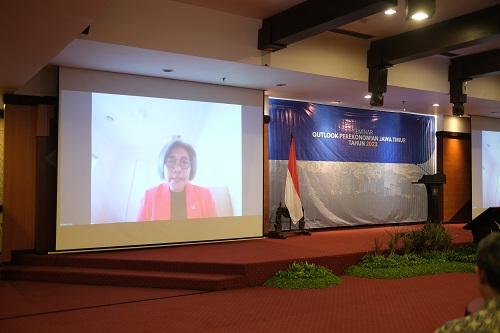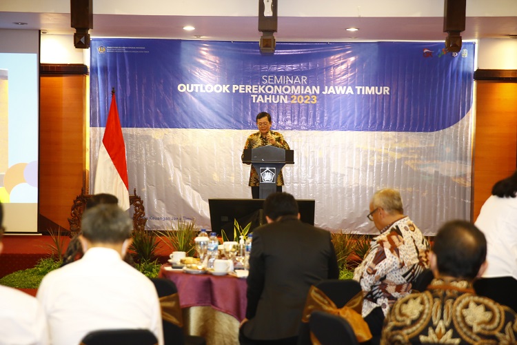 John L. Hutagaol Kepala Perwakilan Kementerian Keuangan Jawa Timur sekaligus Kepala Kantor Wilayah DJP Jawa Timur I menyampaikan opening remarks dan sambutan. Lebih lanjut, John L. Hutagaol menegaskan tujuan Seminar Outlook Perekonomian Jawa Timur Tahun 2023 untuk memberikan prakiraan kondisi ekonomi Jawa Timur tahun 2023, referensi dalam merumuskan strategi implementasi kebijakan bagi pemerintah daerah dan kementerian/lembaga, sebagai masukan bagi dunia usaha dalam pertimbangan pengambilan keputusan usaha dan investasi, bahan pertimbangan bagi dunia akademisi untuk melakukan kajian maupun penelitian lebih lanjut di bidang ekonomi regional, serta membangun tali silahturahmi antara pemerintah daerah, kementerian/lembaga, dunia usaha, akademisi, dan profesi, serta stakeholder lainnya, yang peduli dengan pembangunan ekonomi Jawa Timur yang berkelanjutan.