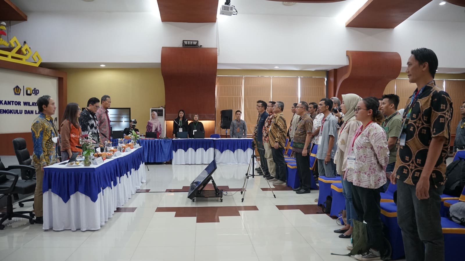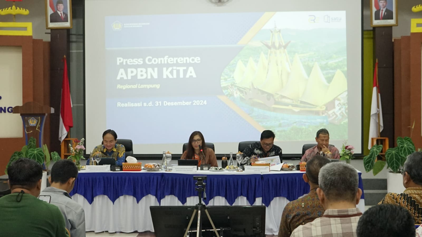 Perwakilan Kementerian Keuangan (Kemenkeu) Satu Provinsi Lampung menyelenggarakan Press Conference Kinerja Anggaran Pendapatan dan Belanja Negara (APBN) Lampung Realisasi s.d. 31 Desember 2024 di Aula Raflesiger, Kanwil Direktorat Jenderal Pajak (DJP) Bengkulu dan Lampung, Kota Bandar Lampung (Kamis, 23/1). Acara ini dipimpin oleh Kepala Kanwil DJP Bengkulu dan Lampung, Rosmauli, selaku Kepala Perwakilan Kemenkeu Satu Lampung Tahun 2025.