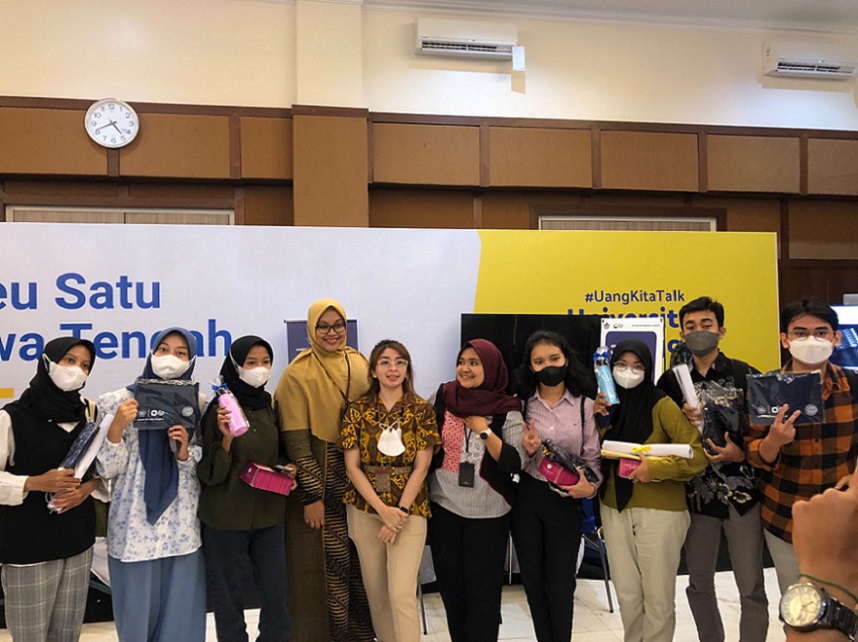 Seluruh mahasiswa-mahasiswi berkesempatan mengikuti kegiatan Kementerian Keuangan (Kemenkeu) Satu Expo dan #UangKita Talk yang dilaksanakan secara tatap muka di Auditorium Lantai 4 Fakultas Ekonomi dan Bisnis (FEB) Universitas Diponegoro (UNDIP), Semarang (Jumat, 17/3).