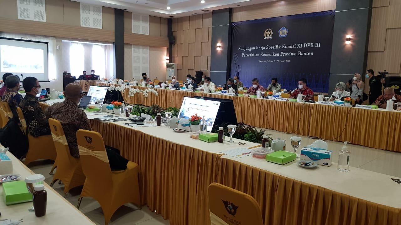Komisi XI DPR lakukan kunjungan dan rapat kerja bersama seluruh jajaran pimpinan Kementeran Keuangan Provinsi Banten di KPPBC Madya Pabean Tangerang (Jumat, 5/2). Rapat kali ini membahas pelaksanaan berbagai peraturan Kementeran Keuangan terbaru dalam mensukseskan program Pemulihan Ekonomi Nasional.