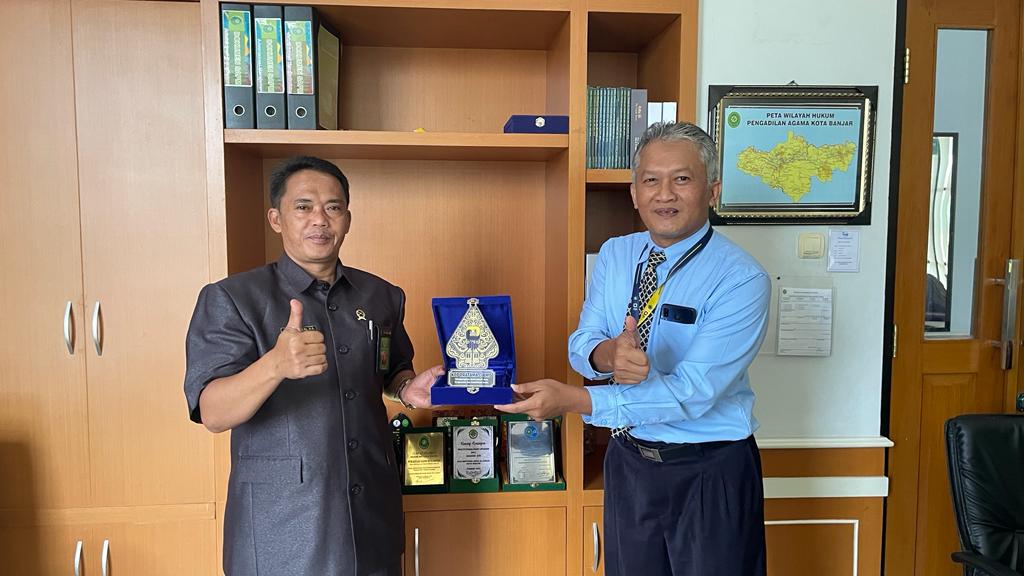 Kepala Kantor Pelayanan Penyuluhan dan Konsultasi Perpajakan (KP2KP) Banjar Slamet Rijadi Sugiharto beserta tim mengunjungi Pengadilan Agama Kota Banjar dalam rangka memberikan apresiasi kepada Aparatur Sipil Negara (ASN) di lingkungan Pengadilan Agama Kota Banjar di Jalan Peta, Kota Banjar (Rabu, 25/1).