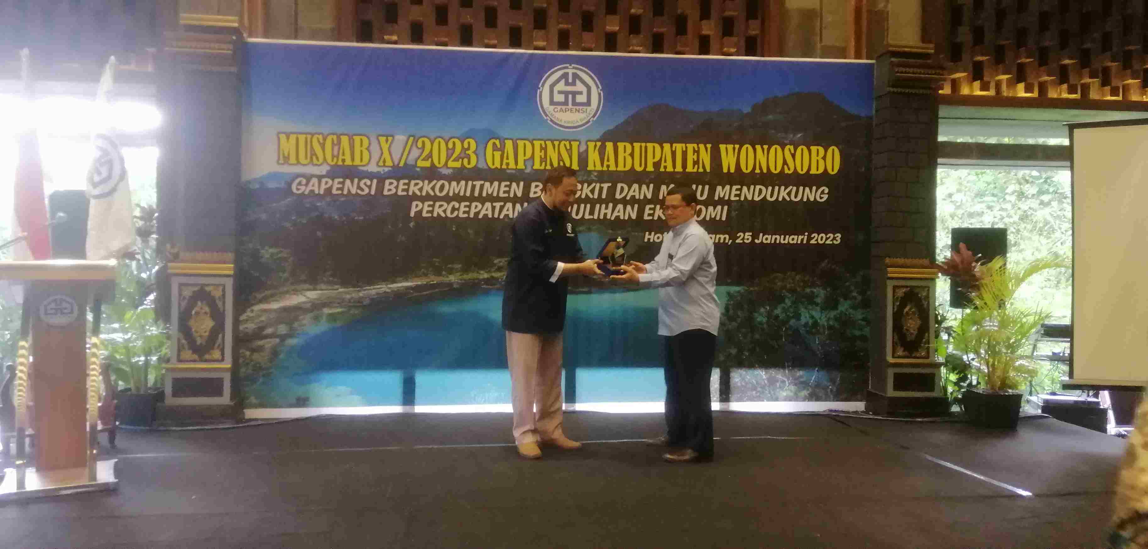 Kepala Kantor Pelayanan, Penyuluhan dan Konsultasi Perpajakan (KP2KP) Wonosobo Tuwuh Muslih menghadiri acara Muscab X/2023 Gapensi Kabupaten Wonosobo di hotel Dafam Wonosobo (Rabu, 25/1). Kegiatan yang dihadiri para anggota Gapensi dan Instansi terkait dimaksudkan untuk mengevaluasi kinerja Gapensi serta penyusunan kepengurusan yang baru. KP2KP Wonosobo menyambut pelaksanaan kegiatan ini dan akan terus mendukung kiprah Gapensi Wonosobo berkontribusi dalam membangun kota Wonosobo, terutama dari sisi konsultasi peraturan perpajakan. Di akhir acara, Tuwuh memberikan cenderamata kepada Ketua Cabang Gapensi Kabupaten Wonosobo Dwi Nugroho, S.E.